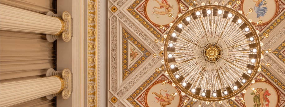 Das Konzerthaus Berlin hat eine ungewöhnliche Baugeschichte. Zwischen 1818 und 1821 errichtet, gilt es als eines der Hauptwerke Karl Friedrich Schinkels, des bedeutendsten Architekten des Klassizismus in Europa. Von Schinkel stammt allerdings nur der Außenbau. Er wurde beim Wiederaufbau nach Kriegszerstörungen von 1979 bis 1984 detailgetreu rekonstruiert. Das Innere ist eine Neuschöpfung. Sie orientiert sich jedoch so kunstvoll an den Formen der Schinkelzeit, dass sie den Eindruck einer originalgetreuen Rekonstruktion erweckt.