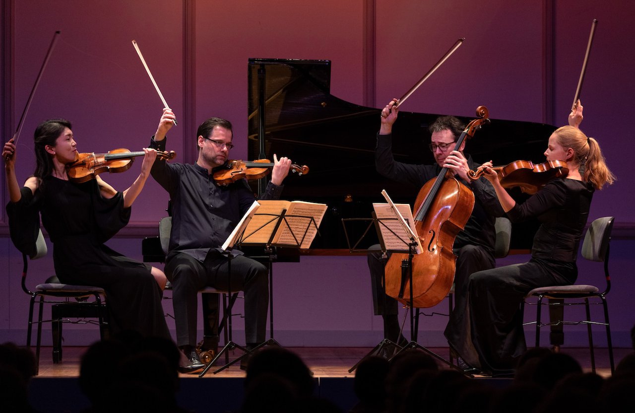 „Und sind sehr gespannt auf die Wirkung", ergänzt Geiger Johannes Jahnel. „Für mich wird es leichter, weil die Bratsche alles in den Noten hat, was ich vorher spielen musste. Amalia muss nach oben in den ewigen Schnee, und ich darf mich entspannen und schöne Musik machen (lacht). Aber abgesehen davon erscheint mir zum Beispiel auch die Wahl der Tempi emotional überzeugender. Dass wir außerdem Haydns Kaiserquartett spielen, freut besonders Amalia, die gerade neben der Schweizer Staatsbürgerschaft die deutsche bekommen hat. Und ein Brahms-Quartett haben wir Geigen, also Sayako Kusaka und ich, uns lange gewünscht – das macht uns allen nun sehr viel Spaß und dem Publikum hoffentlich auch.“
