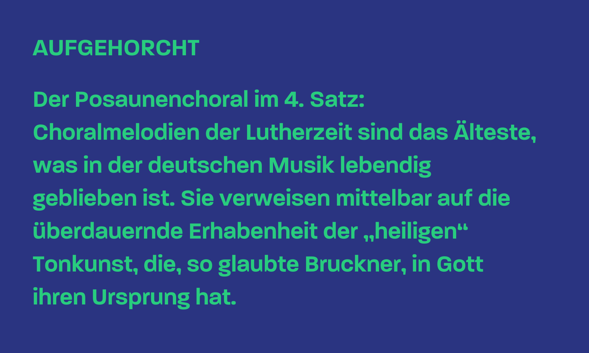 Anton Bruckner galt und gilt vielen als ein weltfremder Sonderling, als ein Narr in Christo, der unbewusst religiös-mystisch inspirierte Musik schuf – „halb Genie, halb Trottel“, meinte der große Dirigent Hans von Bülow. Das ist eine grobe Verkennung. Bruckner wusste genau, was er wollte, im Leben wie in seiner Kunst, und er setzte das zielstrebig durch (mit Ausnahme seiner Heiratspläne, was zu dem erwähnten Urteil beitrug). Der Anschein des Unbeholfenen gehörte zu seiner Selbstdarstellung. Er war ein gläubiger Katholik, aber das beeinflusste seine künstlerische Orientierung nicht – so bewunderte er Richard Wagners Musikdramen, darunter auch den moralisch skandalösen „Tristan“ aufs Höchste. Dass er es lange schwer hatte, persönlich und künstlerisch akzeptiert zu werden, steht auf einem anderen Blatt.
