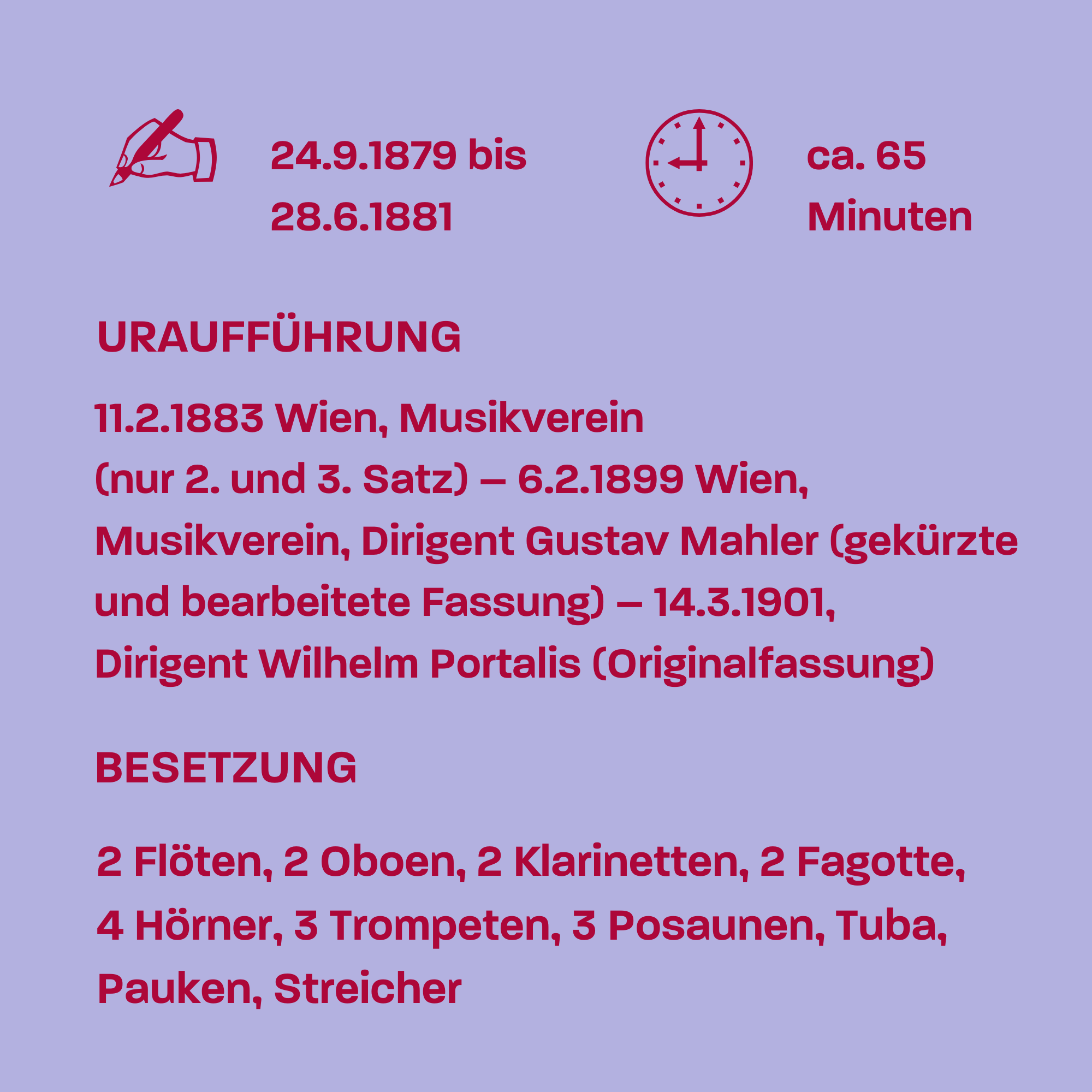 Im September 1879 hatte er seine sechste Sinfonie begonnen, offenkundig getragen von Optimismus, was seine Lebenssituation betraf: finanzielle Sicherheit zeichnete sich ab, als Organist wurde er europaweit gefeiert, seine vierte Sinfonie fand fast ungeteilte Zustimmung. So war nach der „erhabenen“ fünften die „kecke“ sechste an der Reihe.