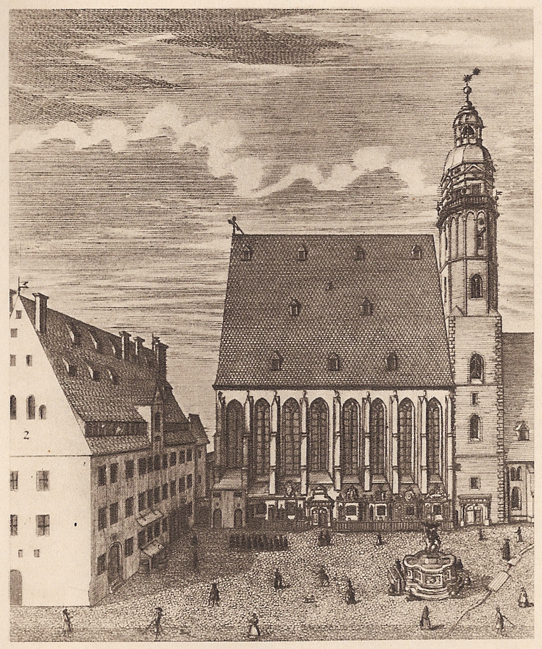 Die Thomaskirche und -schule in Leipzig. Gravur 1723