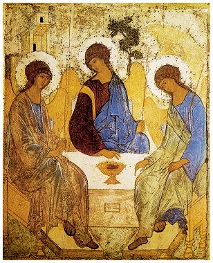 Heilige Dreifaltigkeit. Ikone aus dem 14. Jh.