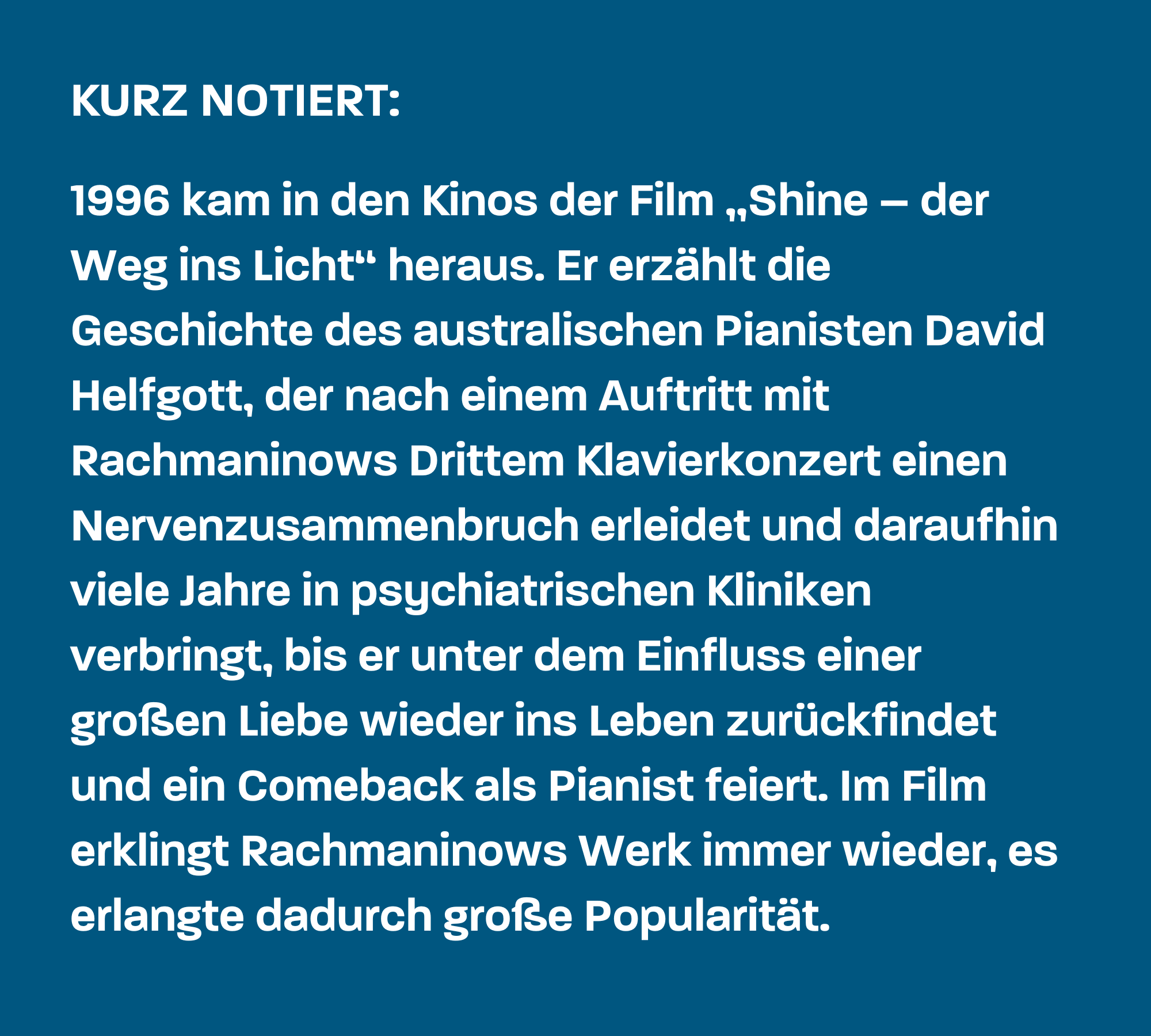 „MUSIK IST GENUG FÜR EIN LEBEN, ABER EIN LEBEN IST NICHT GENUG FÜR MUSIK.“ Sergej Rachmaninow