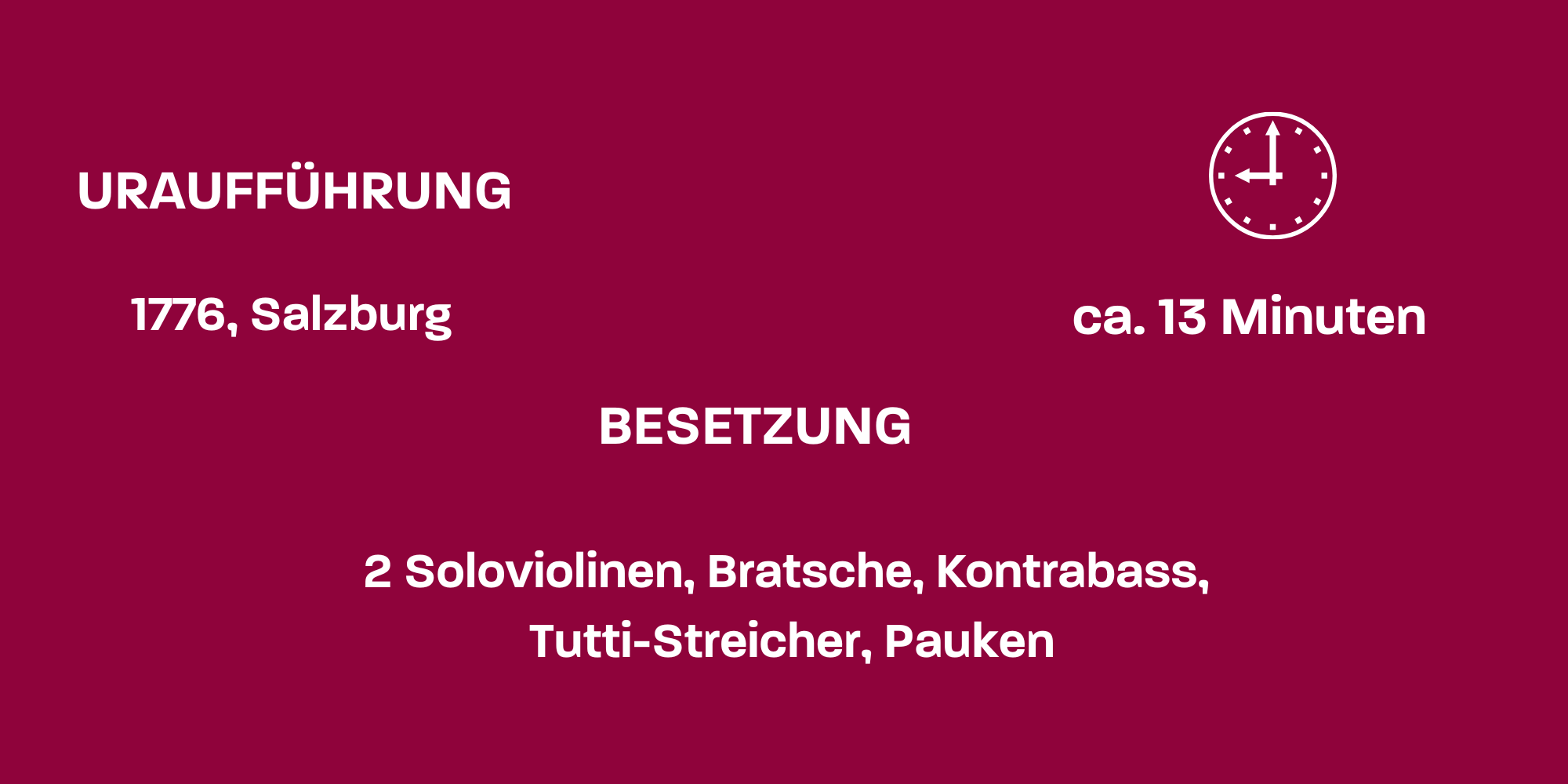 In Salzburg, Mozarts Heimatstadt, war das Narrenfest ein großes Ding – und so versteckt der Komponist in seinem Werk auch direkt einen subtilen Scherz: Damals war es nicht üblich, ein reines Streichorchester mit Pauken zu ergänzen (und die Trompeten wegzulassen). Durch den Schlaginstrumenteneinsatz wirken die ersten Takte beinahe militärisch, was das direkt folgende Cantabile der Solostreicher umso zarter fließen lässt. Gedacht war das ganze als auswendig zu spielender Marsch: Das Tutti wartete im Saal, während die Solist*innen in den Hof oder Saal einzogen. Im Menuett und Rondo – schwungvollen Faschings-Tänzen – kommen die Solostimmen ebenfalls ausführlich auf ihre Kosten, sei es im Trio oder dem ersten Couplet in der Gavotte. Am Ende, da kann man sicher sein, hat Mozart für seine Zeitgenoss*innen kleine Insider eingebaut: Auf ein kurzes Adagio folgt ein bäuerliches Allegro – ein „charmanter Effekt“, wie der Musikkritiker Orrin Howard schreibt, „auch wenn wir diese eingefügten Melodien nicht kennen und den Scherz daher nicht ganz verstehen. Wir können jedoch sicher sein, dass sein Salzburger Publikum ihn verstanden hat.“