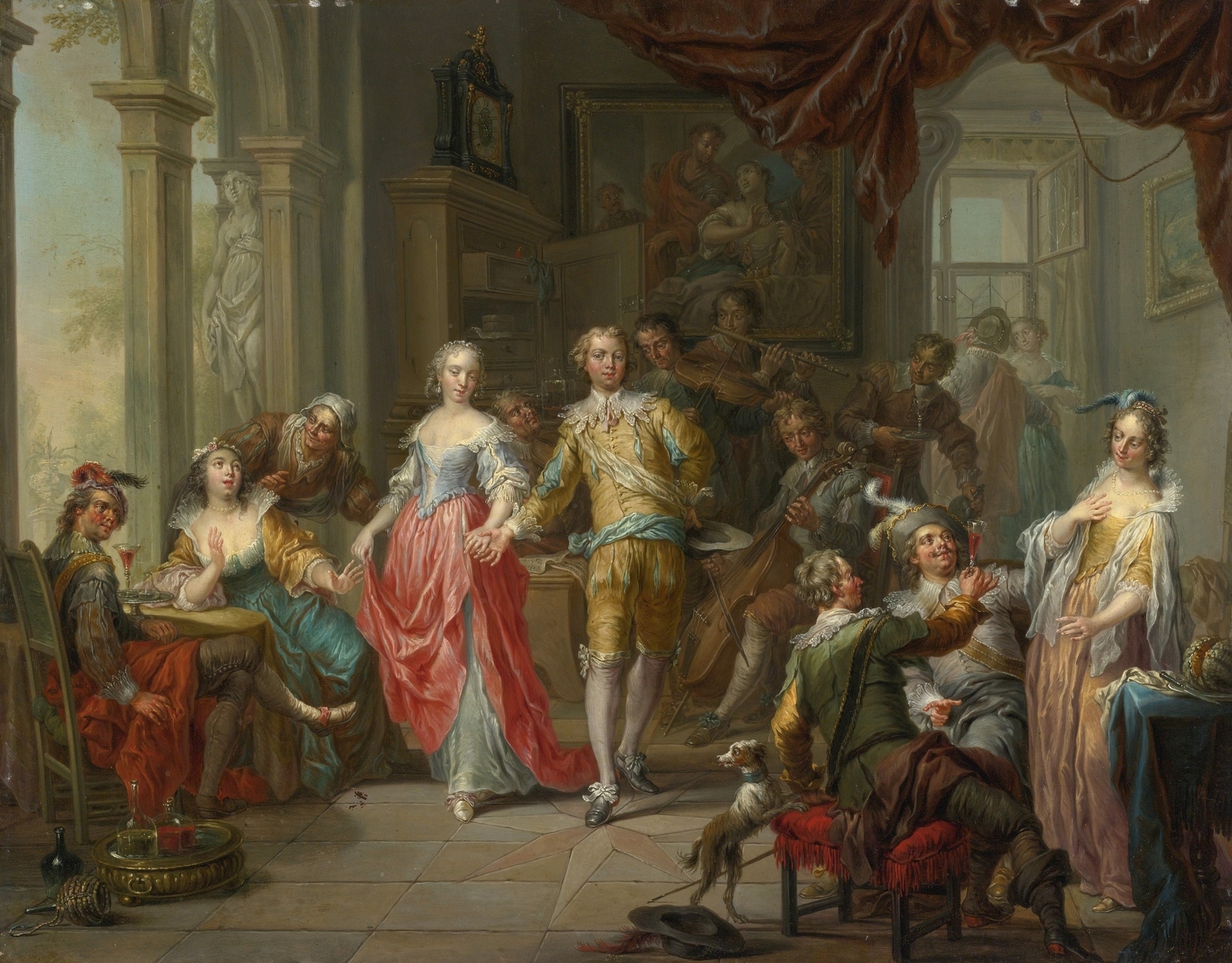 Barocke Gesellschaftsszene. Gemälde von Franz Christoph Janneck, 1761