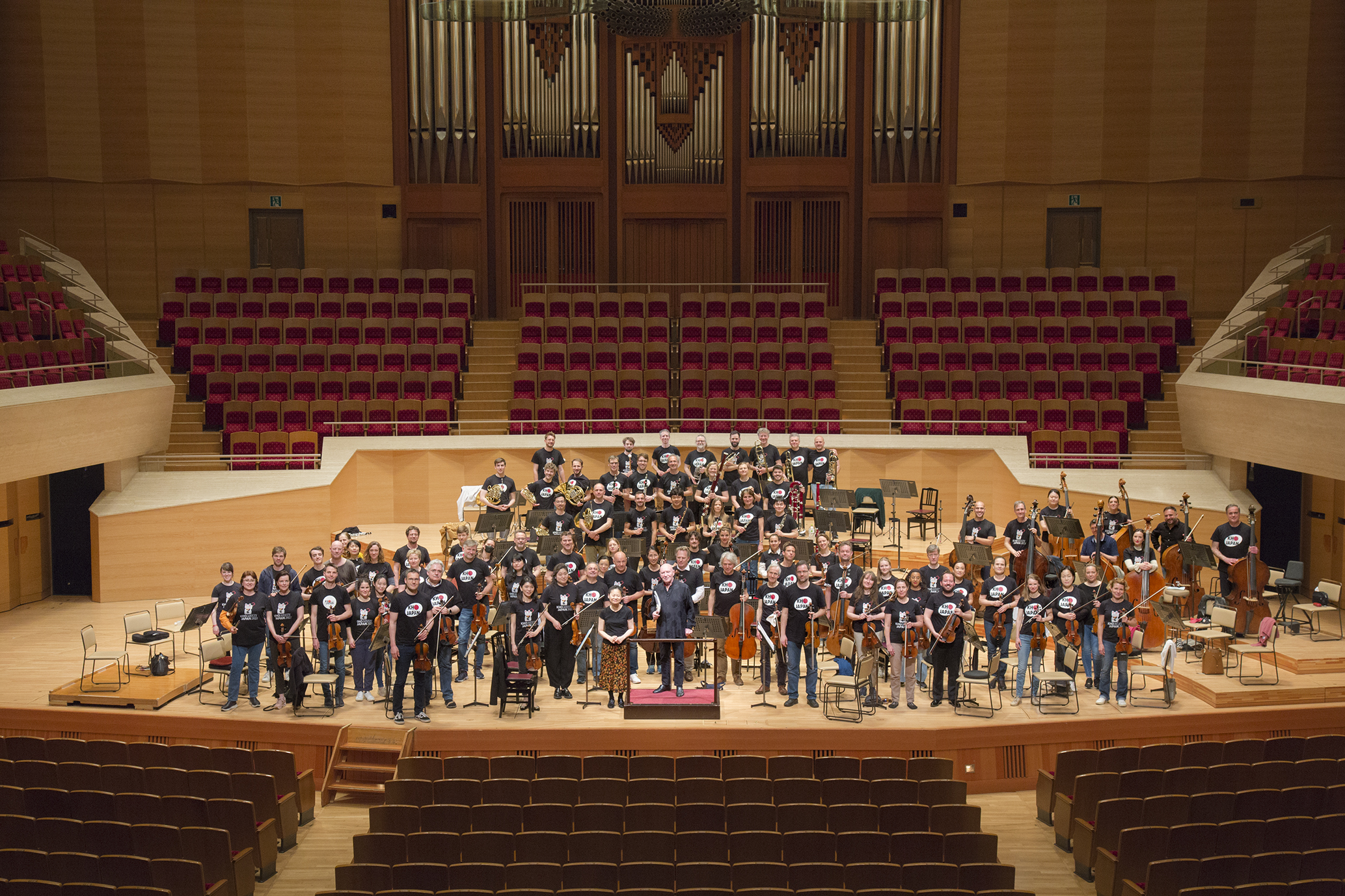 Donnerstag, 11. Mai – obligatorisches Foto in Tournee-T-Shirts vor dem Konzert in Suntory Hall mit Chefdirigent Christoph Eschenbach und Solistin Midori.