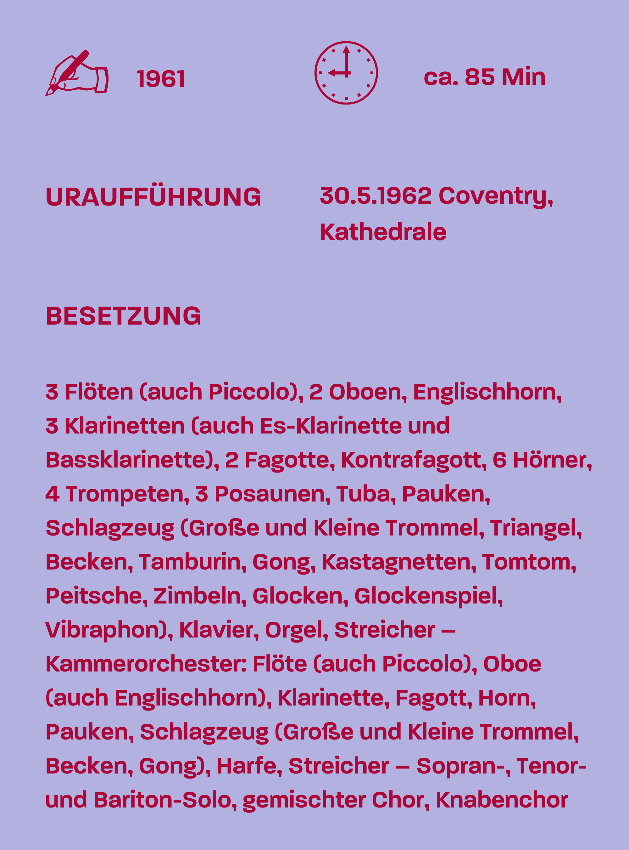 „War Requiem“ für Sopran, Tenor, Bariton, gemischten Chor, Knabenchor und Orchester op. 66 nach Gedichten von Wilfried Owen