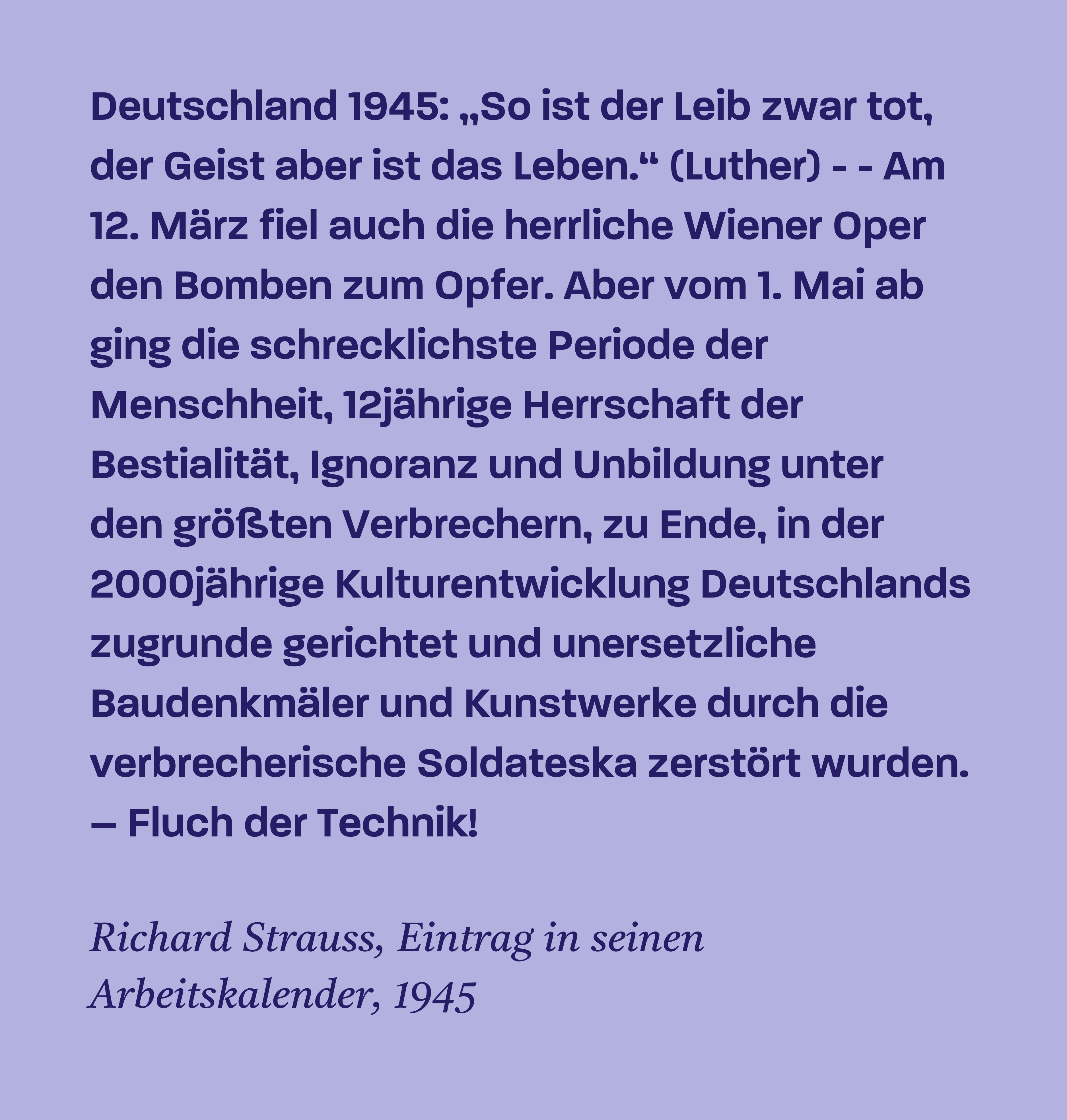 Die Metamorphosen für 23 Solostreicher komponierte Richard Strauss im Frühjahr 1945 unter dem traumatischen Eindruck der schweren Verwüstungen, die die letzten Kriegswochen über Deutschland brachten. Hatte Strauss kraft seines Ansehens und seines Vermögens die Kriegsjahre in relativ gesicherten Verhältnissen überstehen können, so bedurfte es der Zerstörung der Opernhäuser von München und Weimar, Berlin und Dresden, der Stätten seiner größten künstlerischen Triumphe, um ihn auch emotional endgültig aus der Reserve zu locken. „Trauer um München“ war eine Skizze dieser Komposition überschrieben, die Instrumentation des Werkes begann der greise Komponist unter dem Eindruck der Schreckensnachricht aus Wien, wo am 12. März 1945 das Opernhaus ein Raub der Flammen geworden war.