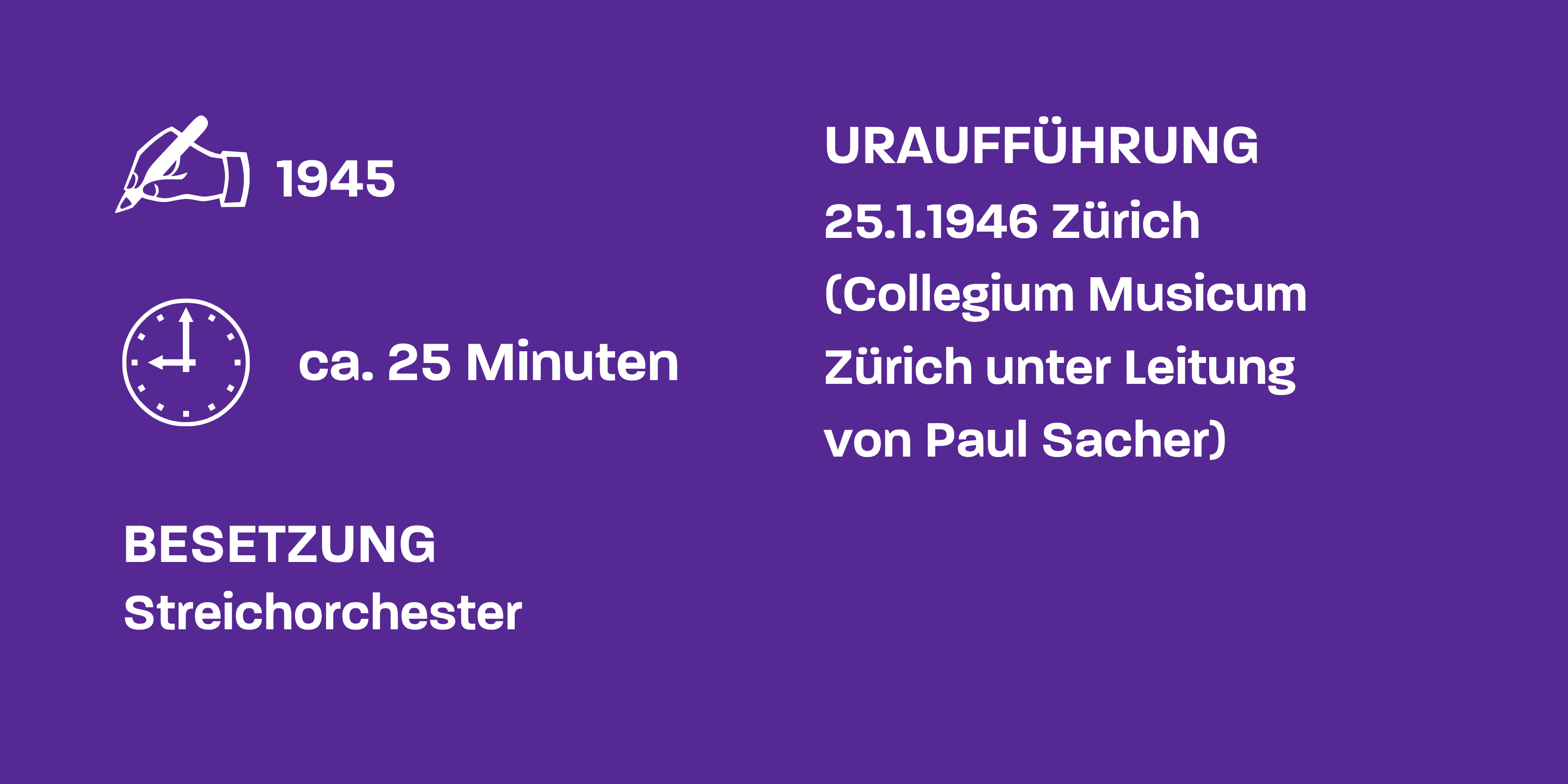 Ein melodisch-harmonischer Impuls, abgeleitet aus dem Trauermarsch von Beethovens „Eroica“, wird zur Keimzelle des dreiteiligen Werkes und durchlebt die vielfältigsten „Metamorphosen“, verstärkt durch das Raffinement einer Auffächerung des Satzes in 23 Solostreicher. Der Komponist bleibt auch in der tiefsten Verzweiflung sich selbst treu: Die Trauer ist in ein Gefäß von vollendeter Schönheit gegossen, und aus der Vollkommenheit der Gestalt des Kunstwerkes kann selbst der Verzweifeltste noch einen Trost schöpfen.
