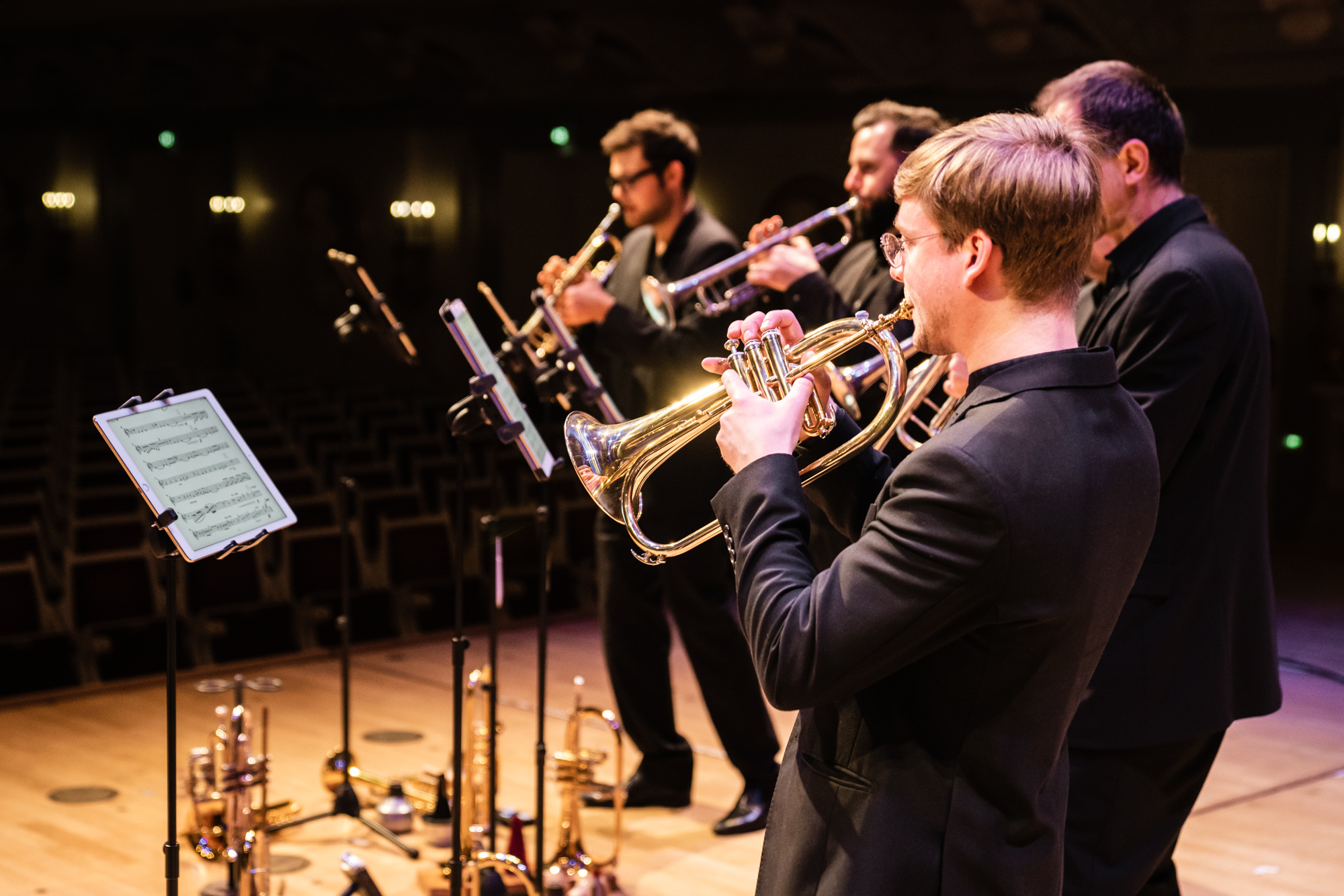Helge: Du hast Recht, als Blechbläser ist man oft eher das Salz in der Suppe. Bei Konzerthaus Brass sind wir Salz und Suppe in einem. Das ist natürlich eine ganz andere Aufgabe. Da hilft vor allem die intensive Probenarbeit mit unserem Dozenten Klaus Schuhwerk. Er fordert sehr viel Phrasierung und Gesanglichkeit heraus und arbeitet sehr detailliert. In den Proben mit ihm wird viel geklatscht, getanzt und gesungen, was für erwachsene Profimusiker ungewöhnlich, aber hilfreich ist. Diese Vorbereitung, der nüchterne Blick von außen und das ehrliche Feedback helfen sehr, das Programm in uns zu verankern und umzusetzen.