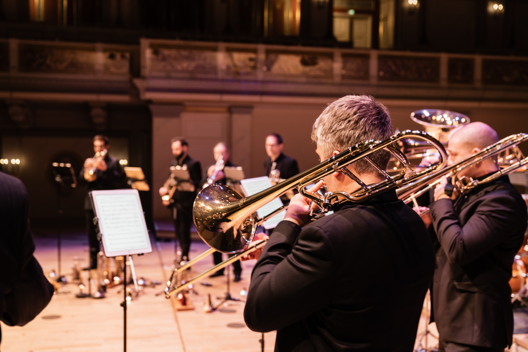 Helge: Ich hatte das Glück, an einer Hochschule in London zu studieren, die eine sehr starke Jazzabteilung hatte, wo aber oft für größere Bigband-Projekte eine Posaune gefehlt hat. So habe ich dort immer wieder mitgespielt, was anfangs gar nicht leicht war. Improvisieren habe ich leider nicht gelernt, aber auch die Erfahrungen durch das Mitspielen waren sehr lehrreich, und ich bin rückblickend sehr dankbar für diese Gelegenheiten. Ich glaube, dass viele Posaunisten zwischen Klassik und Jazz hin- und herwechseln. Vladimir Veres zum Beispiel, unser Wechselposaunist, war, bevor er nach Deutschland kam, Lead-Posaunist bei der Big Band des Serbischen Rundfunks.