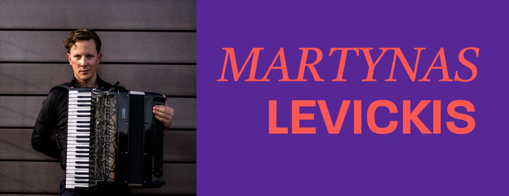 Martynas Levickis, in Šiauliai (Litauen) geboren, studierte bei Owen Murray an der Royal Academy of Music in London. 2010 gewann er die Castingshow „Lithuania’s Got Talent“. Es folgte ein Debütalbum bei Decca Classics, das direkt auf Platz 1 der britischen Klassikcharts kletterte. Er gründete eine Komponist*innen-Akademie für Akkordeonmusik und richtete mehrere Jahre lang in Vilnius ein entsprechendes Festival aus; mit dem Mikroorkéstra rief er ein Ensemble ins Leben, mit dem er in eigens konzipierten und produzierten Shows Stadien im gesamten Baltikum füllt. Martynas Levickis verfügt über ein umfangreiches Solorepertoire von „klassischer“ Musik bis zur Gegenwart, ergänzt durch eigene Bearbeitungen von Volksmusik unterschiedlicher Herkunft sowie Werke für Akkordeon und Orchester. Im August 2022 gab er seine Debüts beim Rheingau Musik und Grafenegg Festival. Neben seiner regen Konzerttätigkeit in Litauen fanden in dieser Saison unter anderem Auftritte im Rahmen der Festspiele Mecklenburg-Vorpommern, mit den Stuttgarter Philharmonikern, im Kurhaus Wiesbaden (mit dem Stuttgarter Kammerorchester) und Konzerte mit der NDR Radiophilharmonie statt. Bei den Festspielen Mecklenburg-Vorpommern war er 2023 als „Preisträger in Residence“ im Einsatz.