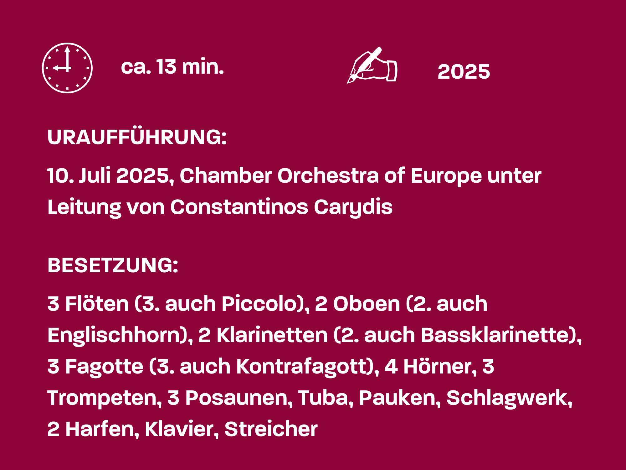 Versinken kann schon mal bedrohlich werden, wenn man dabei das Ende nicht findet. Ein Glück also, dass jedes Konzert einen vorbestimmten Schlusspunkt hat. Und bevor der heute erreicht ist, bietet sich massig Gelegenheit zu rückhaltloser Versenkung: in der imaginierten Glorie antiker Zeiten, in warmen Sommernächten und spannungsgeladenen Gefühlswelten. Und um auch die letzten Bedenken zu zerstreuen, sei versichert, dass Ihnen mit den Musiker*innen des Konzerthausorchesters, dem Pianisten Haochen Zhang und Dirigent Constaninos Carydis die denkbar kompetenteste Reiseleitung zur Verfügung steht. Also lehnen Sie sich – je nach Bedarf und Gemütslage – vor oder zurück, öffnen Sie Ihre Ohren und lassen sich fallen!