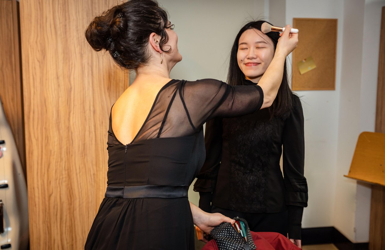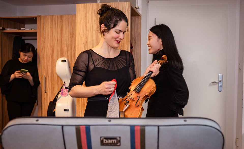 Was war da los? Unsere KHO-Musikerinnen und Musiker erzählen, wie es zu einem Schnappschuss vor dem Konzert kam – dieses Mal mit Geigerin Avigail Bushakevitz und Garderobe 043.