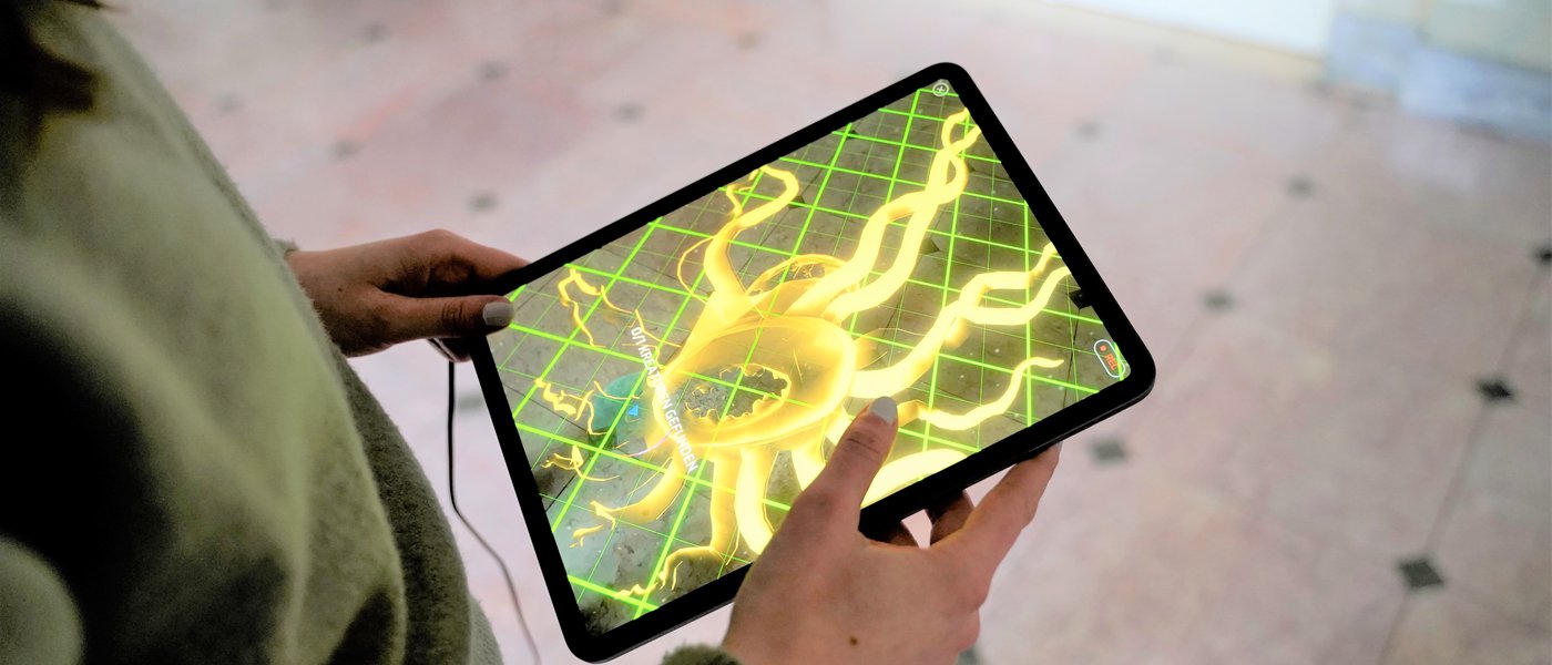 Ein Jahr nach der Premiere in Virtual Reality bekommt die Experience „Umwelten“ nun eine Augmented Reality-App. Damit können User*innen in einem Spiel auf Smartphone und Tablet alle 30 eigenartigen Wesen in verschiedenen Portalen aufstöbern und einsammeln. Durch Antippen bringt man sie zum Klingen und kann sie miteinander kombinieren. So entsteht eine eigene Komposition, die aufgenommen und geteilt werden kann.