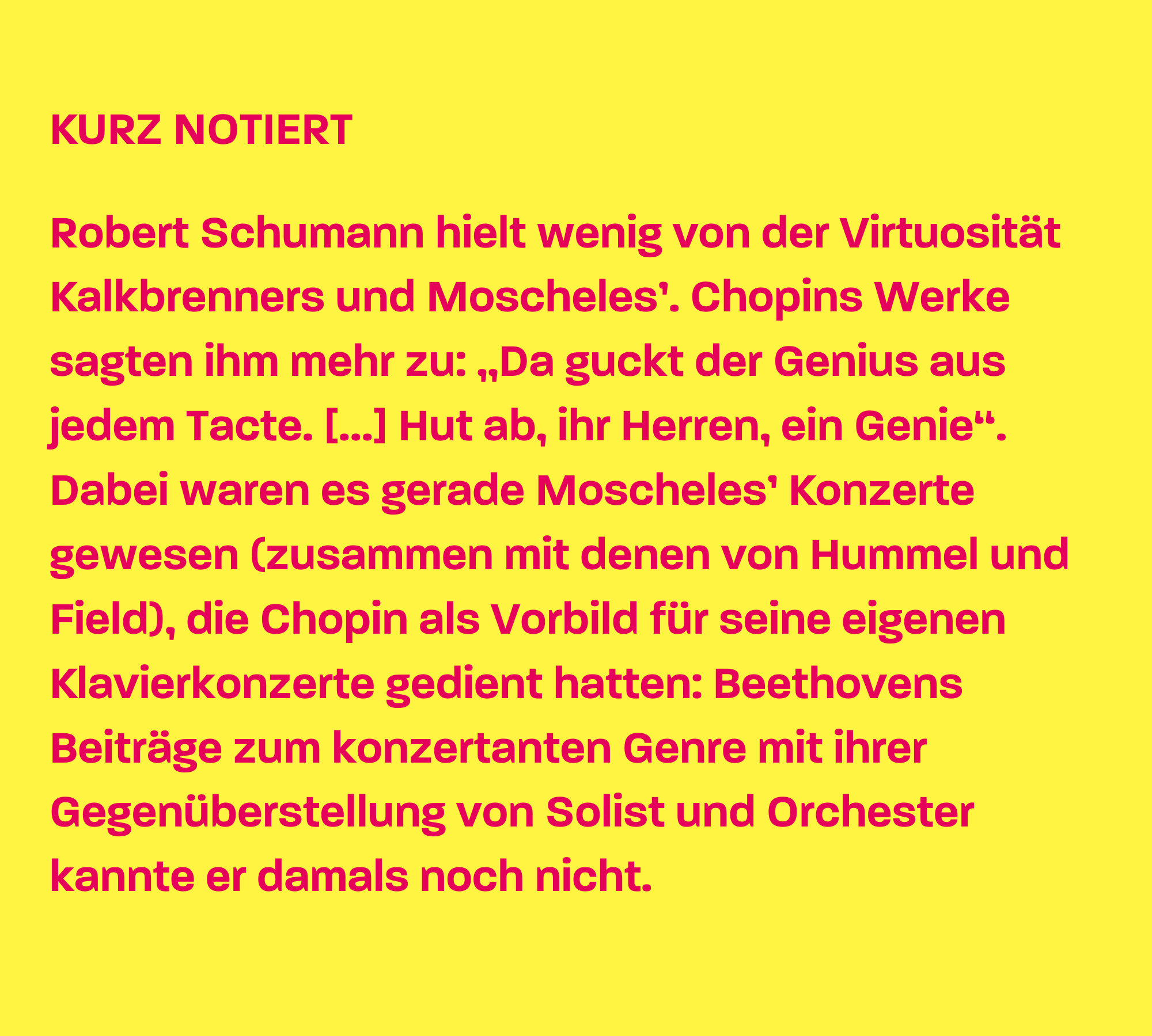 „Auf die Frage, wer der größte Pianist der Welt ist – Liszt oder Thalberg, gibt es nur eine Antwort: Chopin.“ Ernst Legouvé, Pariser Rezensent