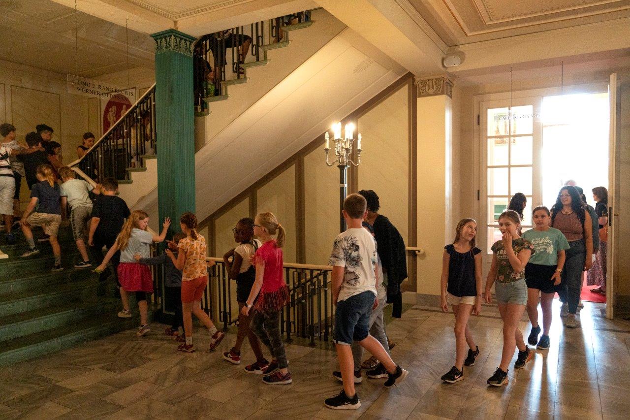 Ganz schön weitläufig, unser Haus! Und zu entdecken gäbe es bestimmt auch viel. Aber wie echte Profis beeilen sich alle diszipliniert, rasch zum Einsingen in den Weber-Saal zu kommen.