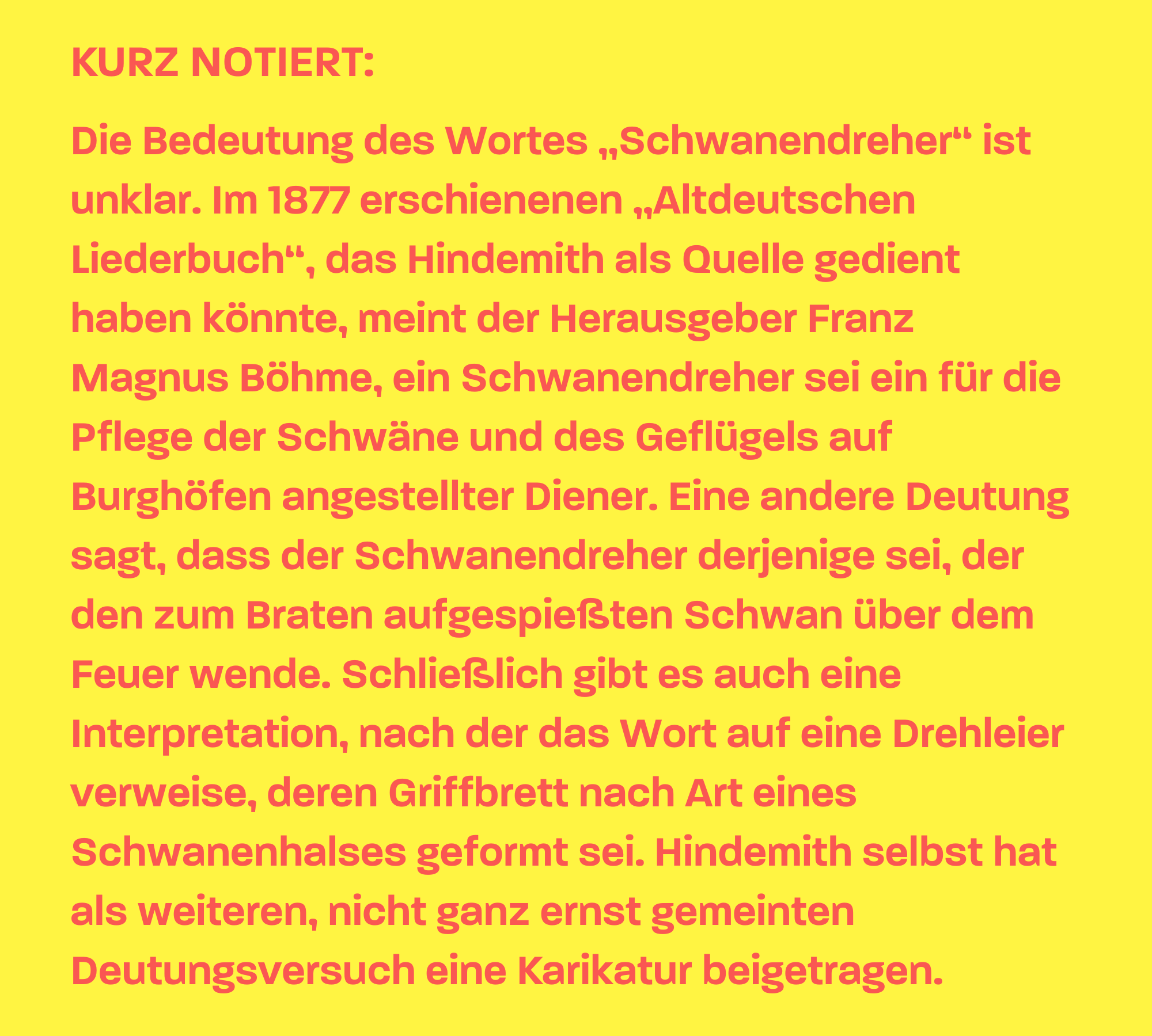 Paul Hindemith war nicht nur ein sehr produktiver Komponist, sondern auch ein ausgezeichneter Bratscher (und beherrschte außerdem das Spiel auf nahezu allen Orchesterinstrumenten auf professionellem Niveau). Das Konzert „Der Schwanendreher“ komponierte er 1935 für seine Konzertauftritte als Bratscher außerhalb Deutschlands. In Deutschland war Hindemith schon kurz nach der Machtergreifung der Nazis als „Kulturbolschewist“ geächtet worden. Aufführungen seiner Musik und Auftrittsmöglichkeiten als Instrumentalist waren fortan stark eingeschränkt.
