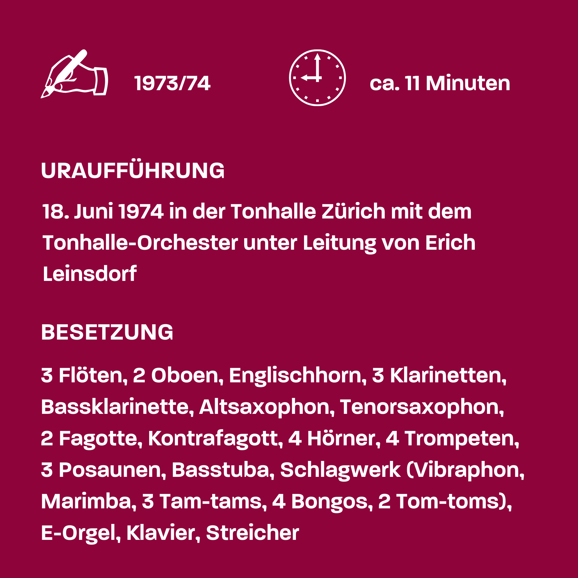 Ein wenig rätselhaft mutet der Titel „Eindrücke“ an. Berio hat nur sehr selten deutsche Titel für seine Werke verwendet. Warum gerade hier? Wohl kaum dürfte das eine Reverenz an die deutschsprachigen Auftraggeber gewesen sein, denn in der mehrsprachigen Schweiz hätte man das italienische „Impressioni“ ohne Weiteres verstanden. Dieses Wort hätte freilich eine andere Konnotation gehabt als der deutsche Titel „Eindrücke“ und vielleicht zu sehr an den Farbenrausch des Impressionismus gemahnt, um den es hier nicht geht. Das Wort Eindrücke hingegen kann auch etwas meinen, das sich tief eingegraben hat – wie das Erinnerungen sein können, die perennierend wiederkehren und selbst unsere (Alb)-Träume insistierend bevölkern.