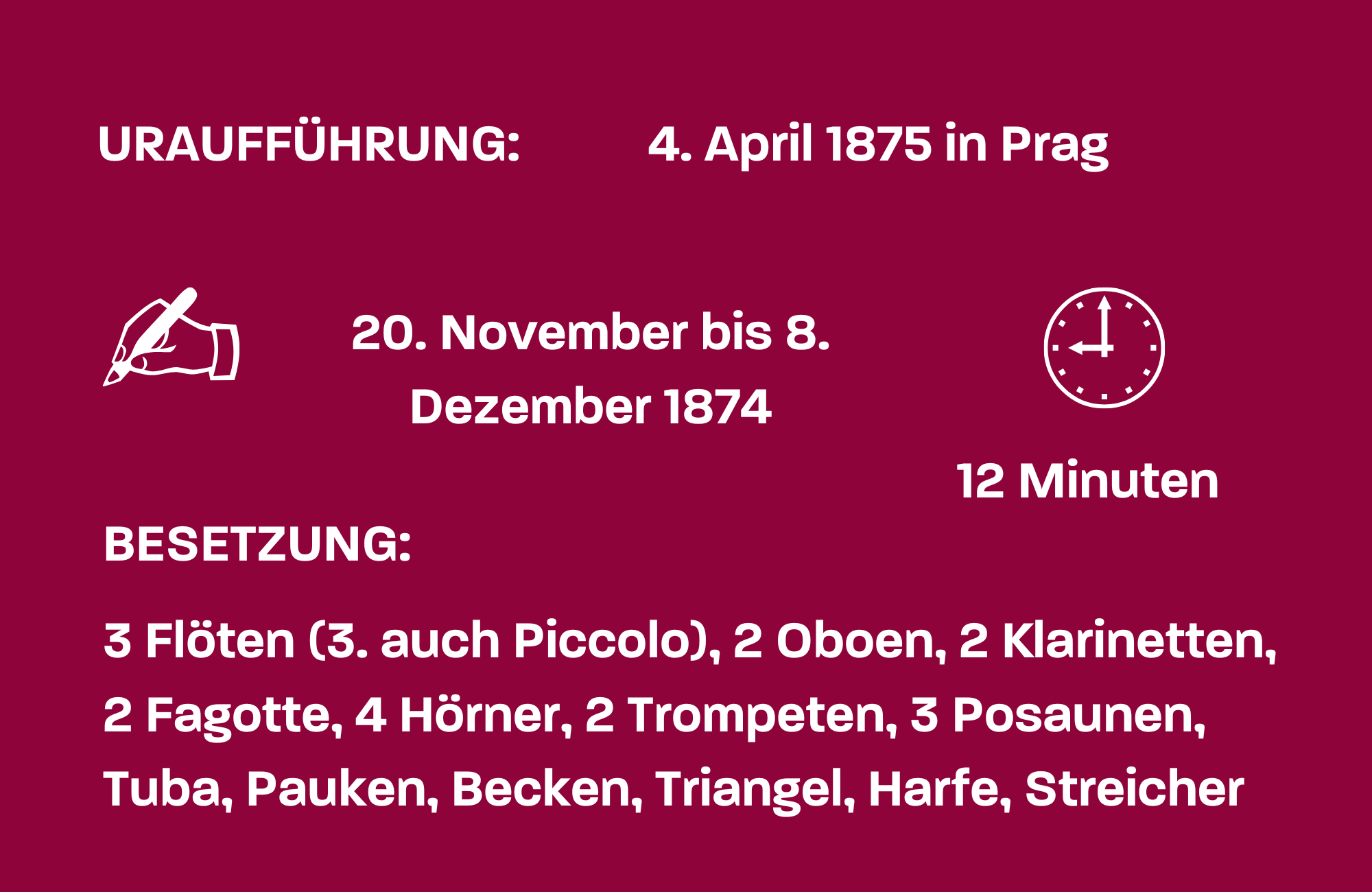 1824 als Sohn eines tschechischen Bierbrauers geboren, fand Smetana schon früh zur Musik. Ab 1843 studierte er Klavier und Musiktheorie und gründete bereits fünf Jahre später seine eigene Musikschule. Nach einer Zeit in Schweden, wo er von 1856 bis 1861 die Abonnementskonzerte in Göteborg leitete, kehrte er in seine Heimat zurück und ließ sich in Prag nieder. Später litt Smetana, Beethoven vergleichbar, an zunehmender Taubheit – ein Schicksal, das er im Finale seines Streichquartetts mit dem Titel „Aus meinem Leben“ auf eindrückliche Weise mit einem auskomponierten Tinnitus in Töne setzte. Vieles von seinem umfangreichen Schaffen ist bis heute nahezu unbekannt geblieben, während einige Stücke aus seiner Oper „Die verkaufte Braut“ aufgrund ihres volksmusikalischen Einschlags auf populären Programmen zu finden sind. Als sein bedeutendstes Werk gilt freilich bis heute der Zyklus „Má vlast“ (Mein Vaterland), der in den Jahren 1874/75 und 1878/79 entstand und insgesamt sechs selbständige sinfonische Dichtungen umfasst. Schon die Zeitgenossen sahen darin eine Apotheose auf Smetanas Heimat, in die Mythen, Landschaften und Geschichte eingegangen sind. Doch trotz der von Smetana selbst verfassten Erläuterungen handelt es sich bei der Komposition nicht um einfache Programmmusik illustrativen Charakters. Vielmehr gestaltete Smetana jeden Satz als in sich schlüssigen musikalischen Verlauf mit Themen, Durchführungen und Reprisen, so dass man sich eher an Beethovens Bemerkung „mehr Ausdruck als Malerei“ (zu seiner 6. Sinfonie, der „Pastoralen“) erinnert fühlt. In der zweiten sinfonischen Dichtung („Vltava“) folgt man dem Lauf des Flusses – wobei das Thema der Moldau zart romantisch anhebt, dramatisch gesteigert wird und schließlich in einer großen Apotheose mündet.