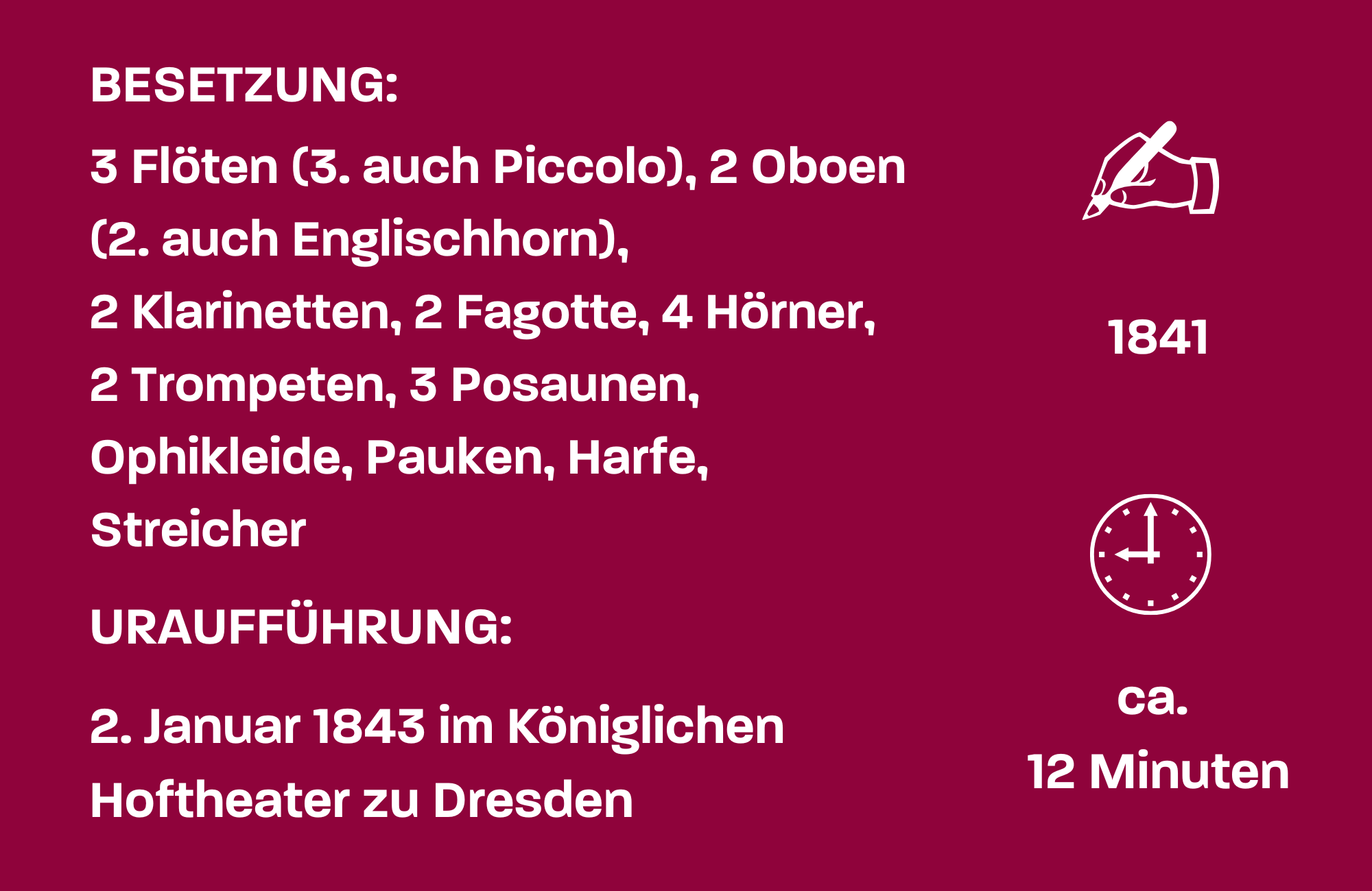 Keine 30 Jahre alt, schuf Richard Wagner mit dem „Fliegenden Holländer“ eine Oper, die bis heute an allen Häusern der Welt gespielt wird. Weniger bekannt ist hingegen, dass der spätere Meister des Musiktheaters zu diesem Zeitpunkt bereits drei andere Bühnenwerke geschaffen hatte: „Die Feen“ (1833/34; erst posthum uraufgeführt), „Das Liebesverbot“ (1835/36; zu Lebzeiten nur ein einziges Mal vollständig gespielt) und „Rienzi“ (1837/40) – eine „Grand Opéra“im Stil Meyerbeers. Mit diesem Werk feierte Wagner 1843 in Dresden einen so großen Triumph, dass er zum königlich-sächsischen Kapellmeister ernannt wurde. Weniger Erfolg war ihm dort allerdings mit seinem „Fliegenden Holländer“ beschieden. Das Werk wurde als zu „entfernt“, zu düster und zu lang angesehen, außerdem konnte die damalige Bühnenmaschinerie den Forderungen der Partitur kaum gerecht werden. Womöglich wusste man am Rande der Sächsischen Schweiz aber auch nur wenig mit einer Geschichte anzufangen, die das Schicksal eines stolzen Kapitäns erzählt. Die Handlung um den auf ewig verfluchten Holländer und die schöne, ihn am Ende selbstlos erlösende Senta geht auf eine Sage zurück, die ursprünglich am südlichsten Ende Afrikas, dem Kap der Guten Hoffnung, spielt. Wagner verlegte sie jedoch, wohl auch aufgrund eigener Erfahrungen auf rauer See im Skagerrak, nach Norwegen. Zugleich hatte er in dieser Partitur erstmals seinen charakteristischen Ton gefunden, der von Ausdrucksintensität, starken dynamischen Gegensätzen, brillanter Instrumentation und einer griffigen, auf Leitmotiven basierenden Thematik geprägt ist.