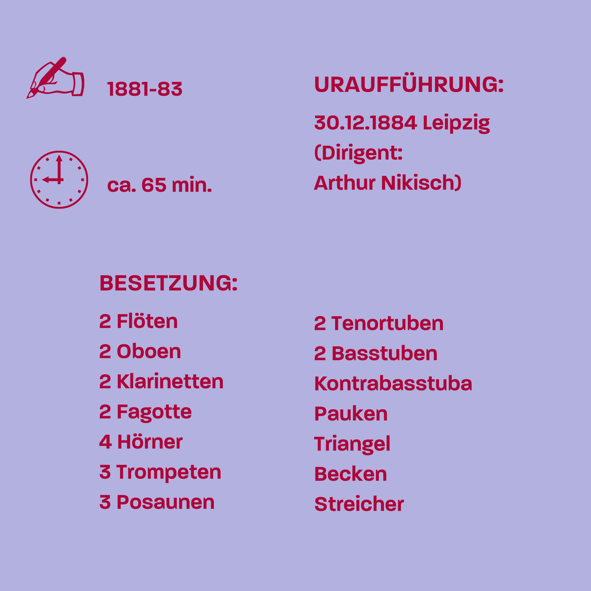 Es ist das Jahr 1881, das schließlich die Wende für den Sinfoniker Bruckner bringt. Endlich, über sechs Jahre nach ihrer Entstehung, wird die vierte Sinfonie von den Wiener Philharmonikern uraufgeführt und überzeugte Publikum und Presse gleichermaßen. Angefacht von diesem lang erwarteten Erfolgserlebnis begann Bruckner sogleich mit der Komposition seiner siebten Sinfonie (die Nummern fünf und sechs waren in der Zwischenzeit entstanden, aber blieben weitestgehend unbeachtet) und war im April 1883 beinahe fertig, als ihn die Nachricht vom Tod Richard Wagners erreichte. Der Wagner, der Bruckners kreativen Stein überhaupt erst ins Rollen gebracht hatte. Der „unerreichbare, weltberühmte und erhabene Meister der Dicht- und Tonkunst“ Wagner, dem er seine glücklose dritte Sinfonie „in tiefster Ehrfurcht“ gewidmet hatte. Der Wagner, der diese Widmung zwar angenommen, aber Bruckner ansonsten stets auf Abstand gehalten hatte. Dieser Wagner fand sich nun als letzte Ehre hineinkomponiert in den Schluss des Adagios der siebten Sinfonie, den Bruckner als „Trauer-Musik um den hochsel. Meister“ titulierte. Die besondere Rolle der Wagnertuben, die Bruckner zusätzlich zu den Hörnern besetzt, macht diese Widmung am deutlichsten. Während der erste Satz mit seinem aus einem Durdreiklang bestehenden Hauptmotiv ungewohnt lebensbejahende Klänge anschlägt, ist das folgende Adagio, wenn auch nicht explizit traurig, eines der bewegendsten Stücke der Musikgeschichte. Auch hier hält er das motivische Material simpel, im Fokus steht ein dreitöniges Motiv, das er im Verlauf des Satzes in unablässiger Steigerung durch nahezu alle Tonarten zirkulieren lässt, so dass man das Gefühl bekommt, der Himmel täte sich auf. Am Höhepunkt des Satzes erstrahlt ein Beckenschlag mit anschließendem Triangel-Triller von gleichermaßen monumentaler wie zerbrechlicher Schönheit, bei dem es selbst als Atheist schwerfällt, nicht an einen beethovenschen Götterfunken zu denken. Das Scherzo ist, typisch für Bruckner, sehr klassisch gehalten. Hier sind Angst und Stress die maßgebenden Affekte. Bruckner verarbeitet den Brand des Wiener Burgtheaters, in dessen Nähe sich auch seine Wohnung befand. In der panisch galoppierenden Streicherfigur hört man, wie Bruckner in Angst um seine Manuskripte nach Hause geeilt sein muss, während das markante Fanfarenmotiv in den Trompeten die Signalhörner der Feuerwehr widerspiegelt. Das Finale ist schließlich ein weiteres Paradebeispiel für Bruckners Fähigkeit, aus vordergründig einfachem Material maximal viel herauszuholen. Immer im Wechsel folgen ein fröhlich verspieltes Thema und brachial schreiende Tuttiausbrüche aufeinander, die sich den punktierten Rhythmus teilen. Auch hier treibt er im Mittelteil die Steigerung durch Modulationen und Crescendi auf die Spitze, bevor eine strahlende Coda, die Wagner nicht besser hätte schreiben können, der Sinfonie ihre Krone aufsetzt.