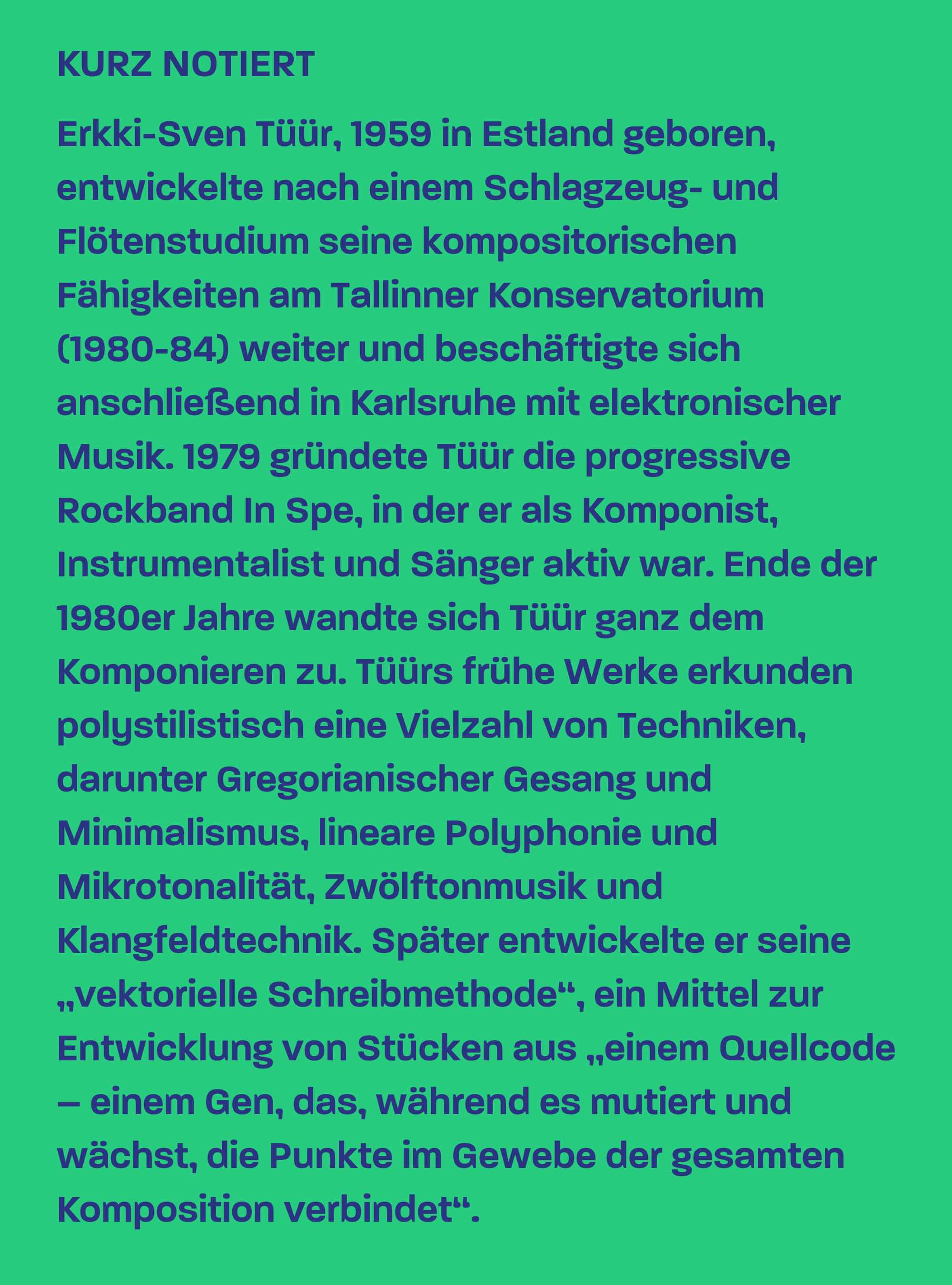 Verbindet die beiden Zehnten von Erkki-Sven Tüür und Dmitri Schostakowitsch mehr als die Nummerierung des Werkes und der Gattungsname? Die Klangwelten beider Werke sind schon sehr verschieden. Dennoch: Beide eint vielleicht, dass ihre Musik – ohne dass es ein konkretes Programm gäbe – über sich hinausweist. Schostakowitschs Zehnte reflektiert eine dunkle, von Angst, Repression und Terror geprägte Epoche. Aber diese Erfahrungen sind umgeschmolzen in Klänge, die Menschen zu berühren vermögen, die vielleicht nichts vom Kontext des Werkes wissen. Und so erfüllt sie einen Anspruch, den Erkki-Sven Tüür folgendermaßen formulierte: „Musik muss alles haben – überwältigende Kraft, erhellendes Licht, unendliche Sanftheit und tiefste Dunkelheit. Wut, Schmerz, Trauer. Alles, was uns menschlich macht. Und die zarte Berührung der erlösenden Liebe.“