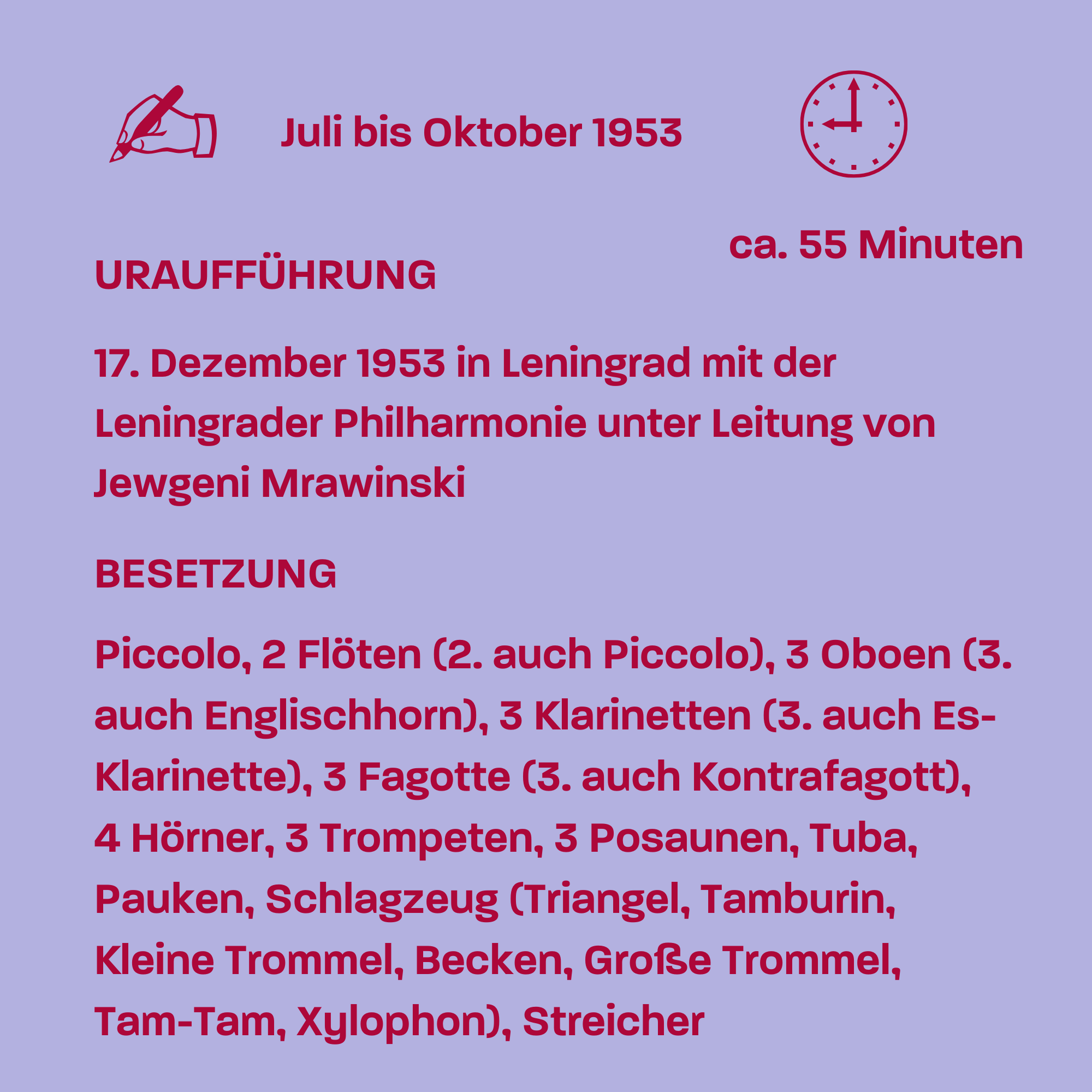 Die 10. Sinfonie entstand in den Monaten nach Stalins Tod, zwischen Juli und Oktober 1953. Erstmals seit 1945 äußerte sich Schostakowitsch in der für ihn so zentralen Gattung der Sinfonie, und man geht wohl nicht fehl in der Annahme, dass er im Medium der Instrumentalmusik das Vergangene reflektierte.