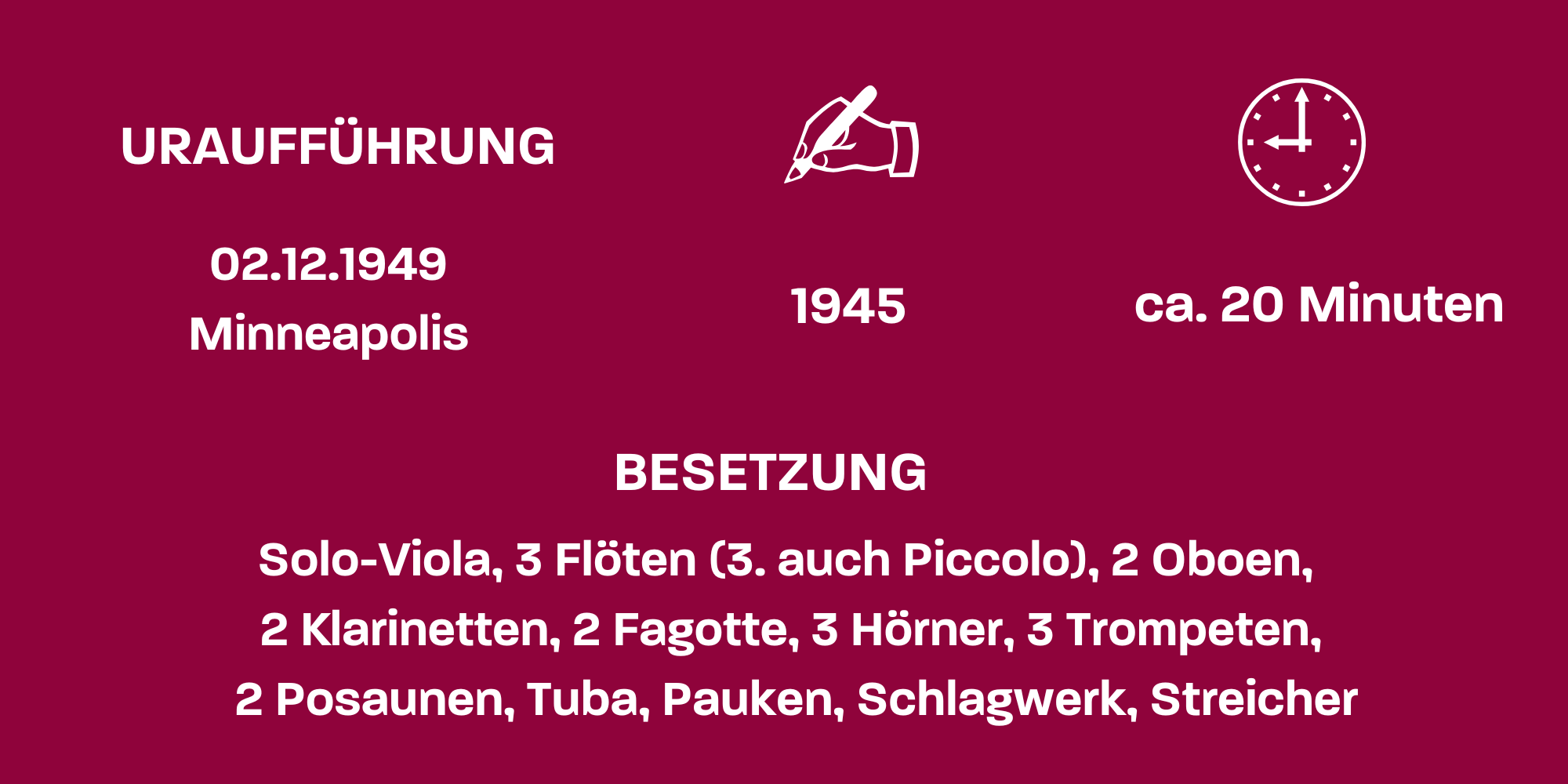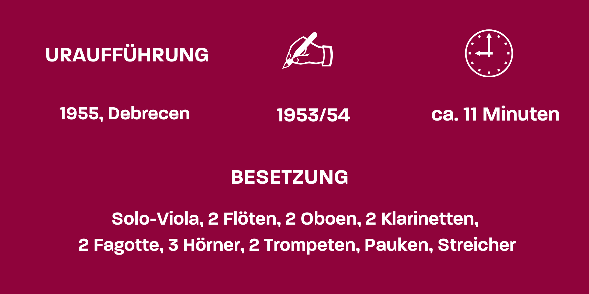 Béla Bartók wiederum starb, ehe er die Skizzen für sein Bratschenkonzert zu einem komplett orchestrierten Werk auskomponieren konnte. Es wurde vom schottischen Bratschisten William Primrose in Auftrag gegeben, der sich von Bartók ein Stück wünschte, das sich nicht an die Grenzen und Konventionen der Bratsche hielt. Der Komponist lebte in dieser Zeit, Ende 1944, bereits in seinem fünften Jahr im amerikanischen Exil und war schwer an Leukämie erkrankt – ein Umstand, der ihn allerdings zu künstlerischer Höchstform beflügelte. Doch sein Körper wird schwächer und schwächer. Der Anfang ist spät gesetzt.