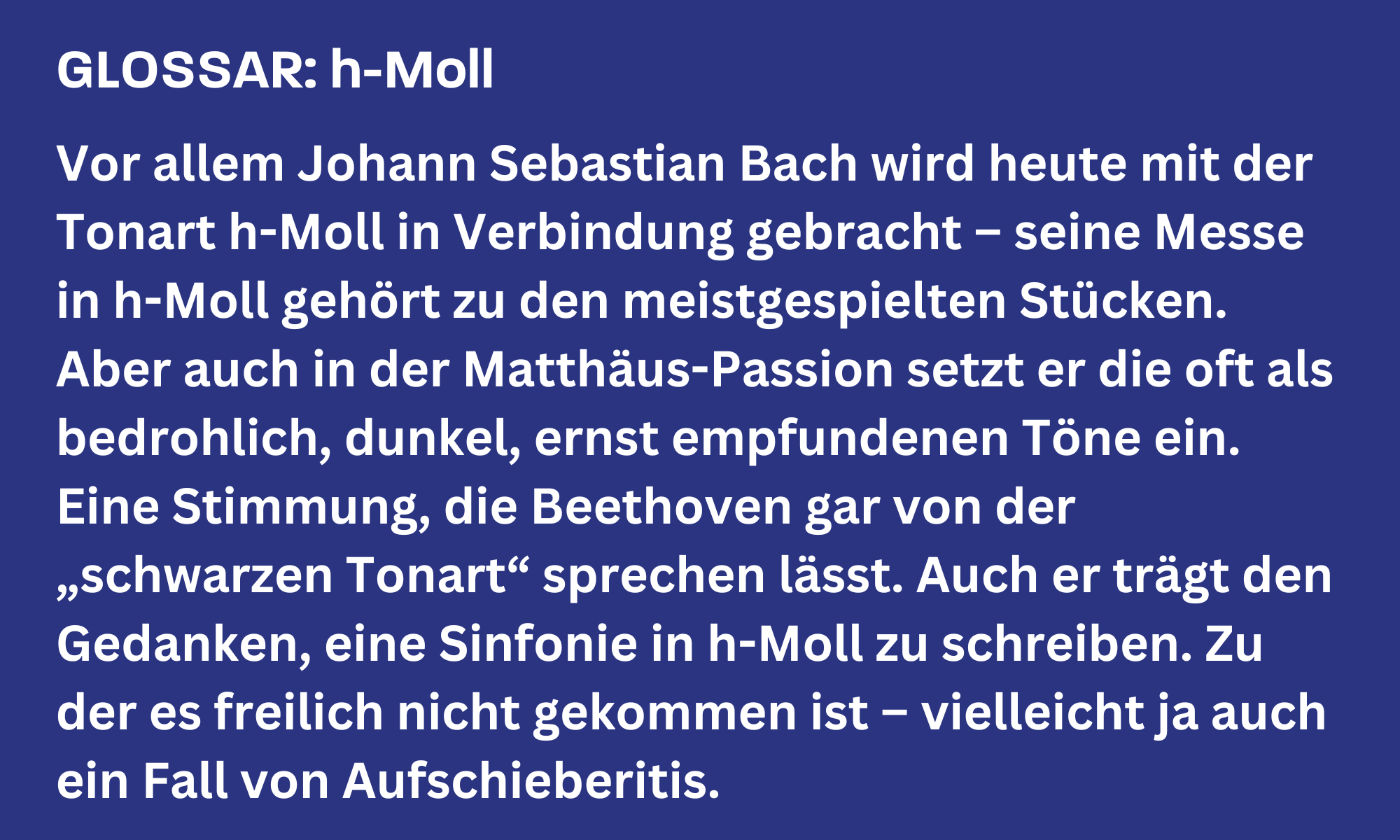 Die wohl bekannteste Aufschiebe-Anekdote der Musikgeschichte ist übrigens Wolfgang Amadeus Mozart zugeschrieben. Der lässt sich 1787 wirklich sehr viel Zeit für die Ouvertüre seines „Don Giovanni“. Die Proben verstreichen, die Generalprobe verstreicht – ohne auch nur eine Skizze der Eröffnung. Am Abend vor der Uraufführung sieht sich Mozart dann doch gezwungen, zu liefern. Er bittet seine Frau Constanze, ihm Punsch zuzubereiten und ihn mit Geschichten durch die Nacht zu bringen, auf dass er nicht einschlafe. Vielleicht muss man Mozart sein, diese Konstellation als produktiv zu empfinden. Vielleicht sitzt aber auch ihm wirklich die Angst im Nacken. Jedenfalls füllen sich die Seiten. Um sieben in der Frühe kommt der Kopist. Abends spielt das Orchester vor vollem Haus, ohne vorherige Probe, die Tinte kaum trocken. Die Ouvertüre wird ein Triumph.