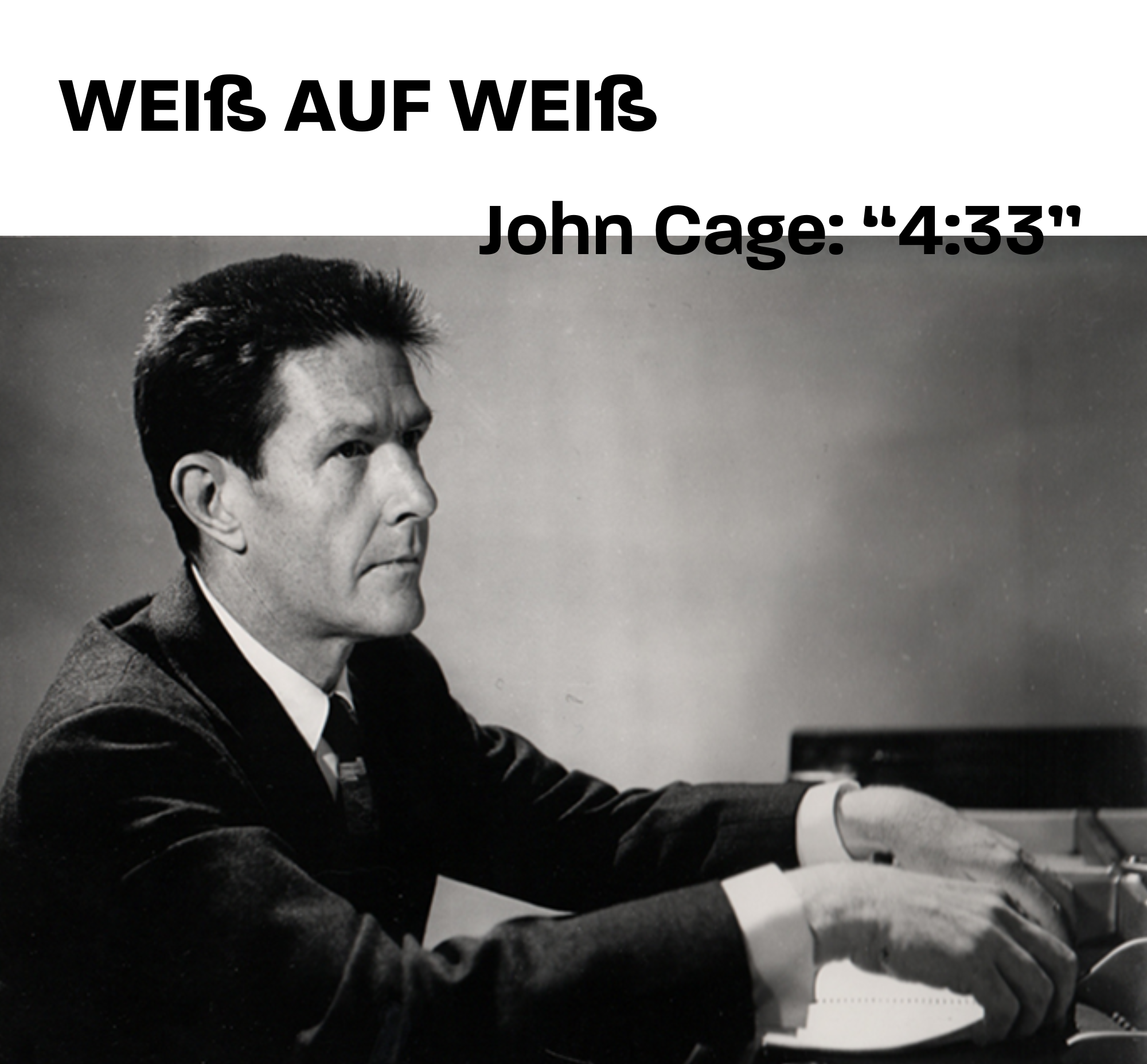 Ist das nun große Kunst oder großer Unfug? In Europa, wo der Künstler als genialer Erschaffer einer eigenen Welt geradezu ein geistesgeschichtlicher Archetyp ist, stieß Cage jedenfalls überwiegend auf Unverständnis. Ähnlich wie der Maler Robert Rauschenberg, der ein Jahr zuvor für seine „White Paintings“ weiße Farbe auf weiße Leinwände malte. Mit ihm, dem Tänzer Merce Cunnigham (seinem Lebensgefährten) und anderen inszenierte Cage 1952 am Black Mountain College in North Carolina eine spartenübergreifende Impro-Performance, die als erstes „Happening“ der Kunstgeschichte gilt.