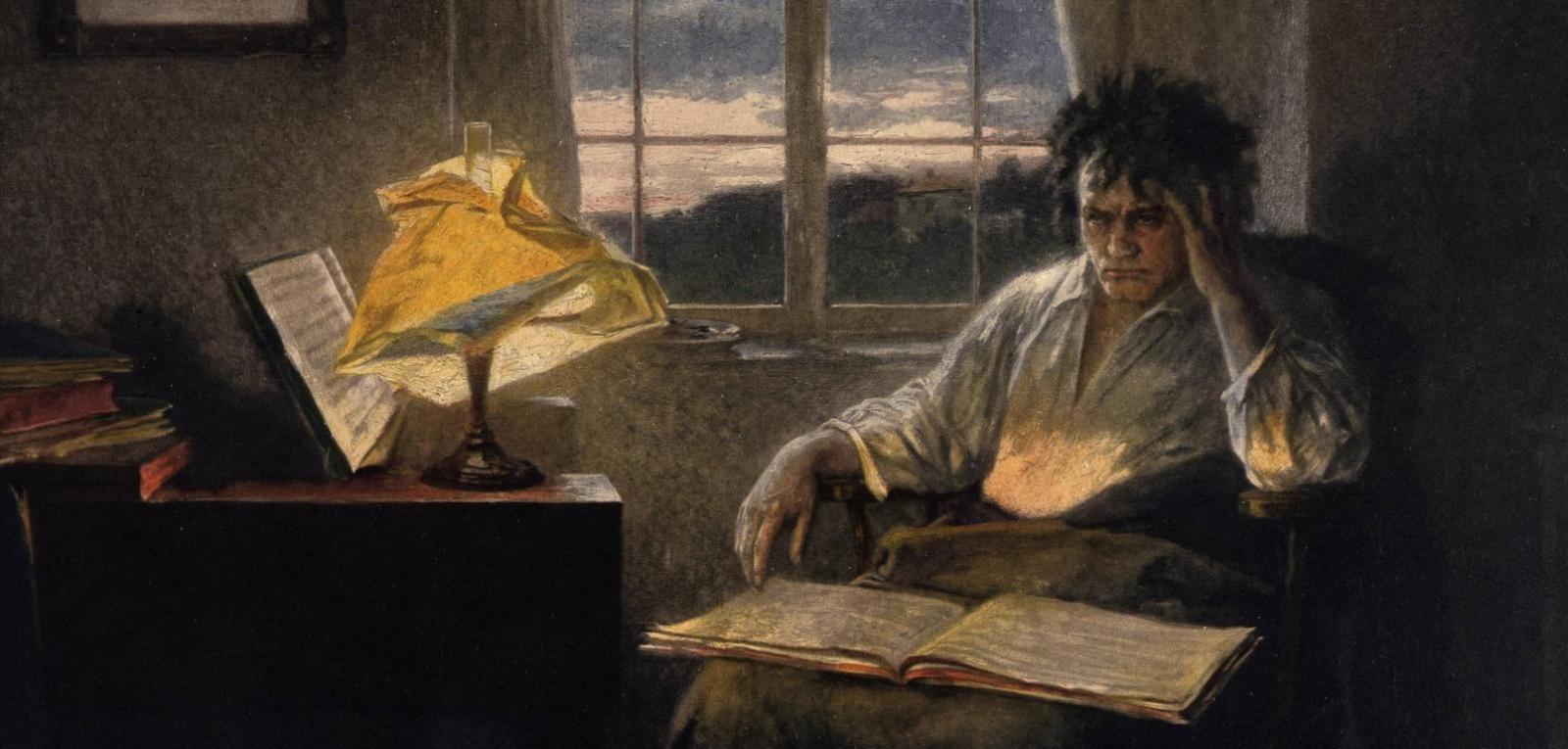 Beethoven in seinem Arbeitszimmer im Morgengrauen. Gemälde von Rudolf Eichstaedt (1854-1924)