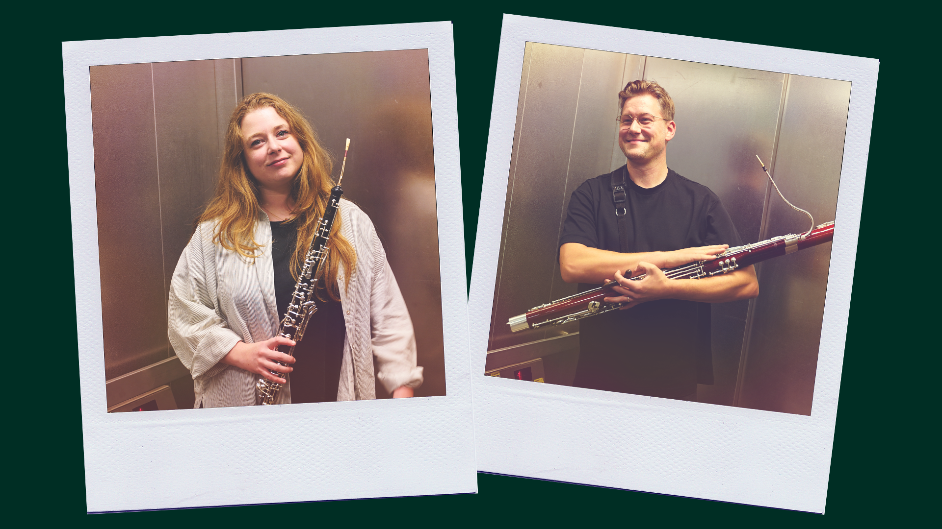 Aus der Tiefe der Holzbläsergruppe auf dem Weg nach oben – wir fahren Aufzug mit Solo-Englischhornistin Iria Folgado und Alexander Kasper, dessen komplette Dienstbezeichnung „Zweites Fagott mit Verpflichtung zum Kontrafagott“ lautet. Und erfahren, dass tiefe Holzbläser ganz unterschiedliche Charakteristika auszeichnen.