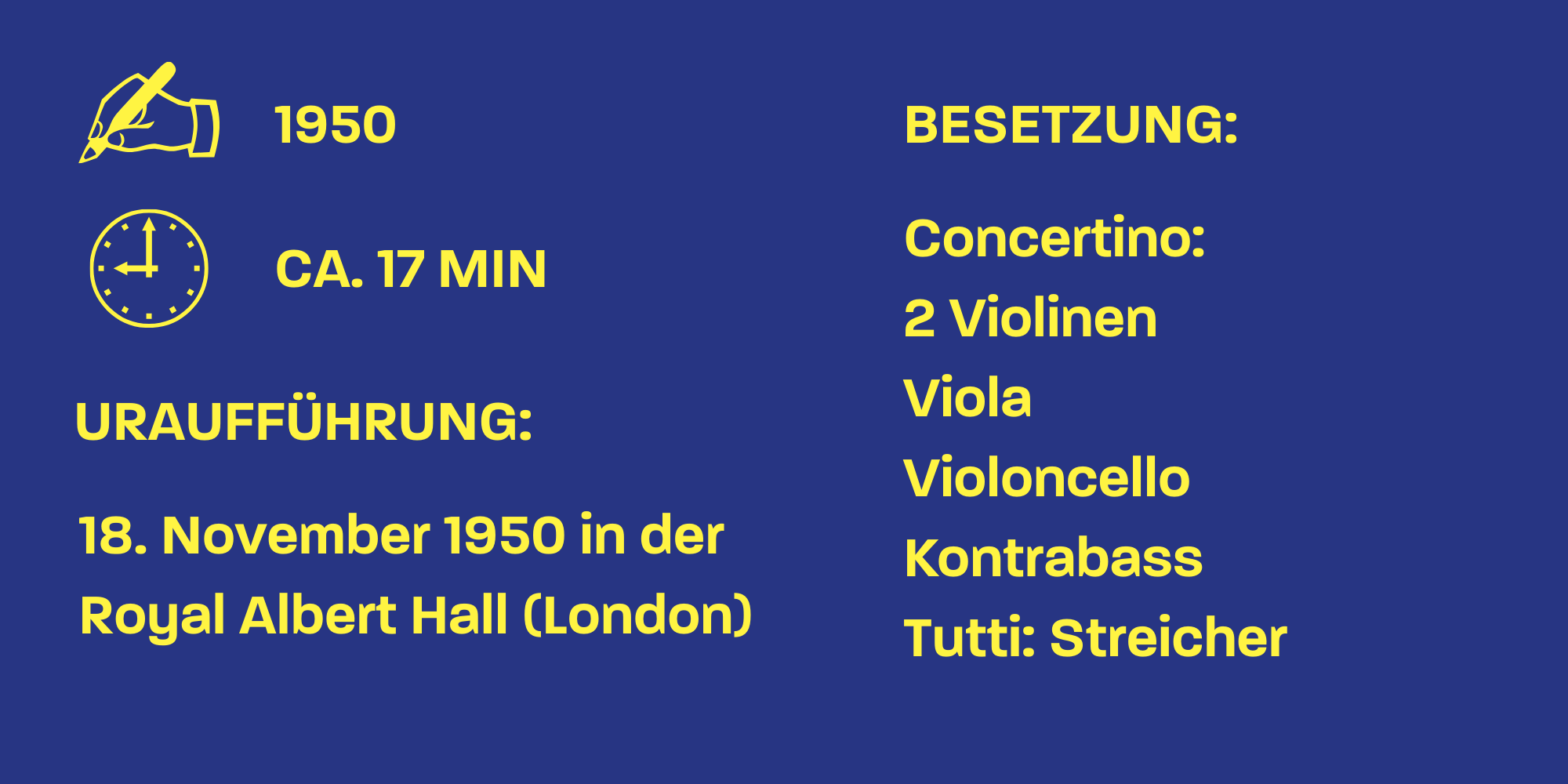 Exactly 40 years later, the 78-year-old Vaughan Williams also divided the orchestra into several groups in one of his older works, the Concerto grosso for strings - not for reasons of sound, however, but quite pragmatically for technical and instrumental pedagogical reasons: It was a work for the Rural Music Schools Association of the time, which was to be premiered in the Royal Albert Hall by over 400 pupils with very different abilities. Accordingly, there is a demanding ‘Concertino’ for the advanced players, a ‘Tutti’ in which the young players are only required to play the third position and simple double stops - and a further tutti group to be added ad libitum, which also provides a part for the absolute ‘beginners’ that can only be played on open strings and therefore cannot spoil the intonation. Vaughan Williams also chose the key of D major, whose harmonic keynotes (D, A, E as well as G and C) can be realised on the open strings of the strings. The division of the orchestra also suggests a reference to the Baroque form of the concerto grosso - although the term rather than the associated forms have been adopted here. Rather, it is a suite with stylised (dance) movements, at the end of which the introductory Intrada returns.