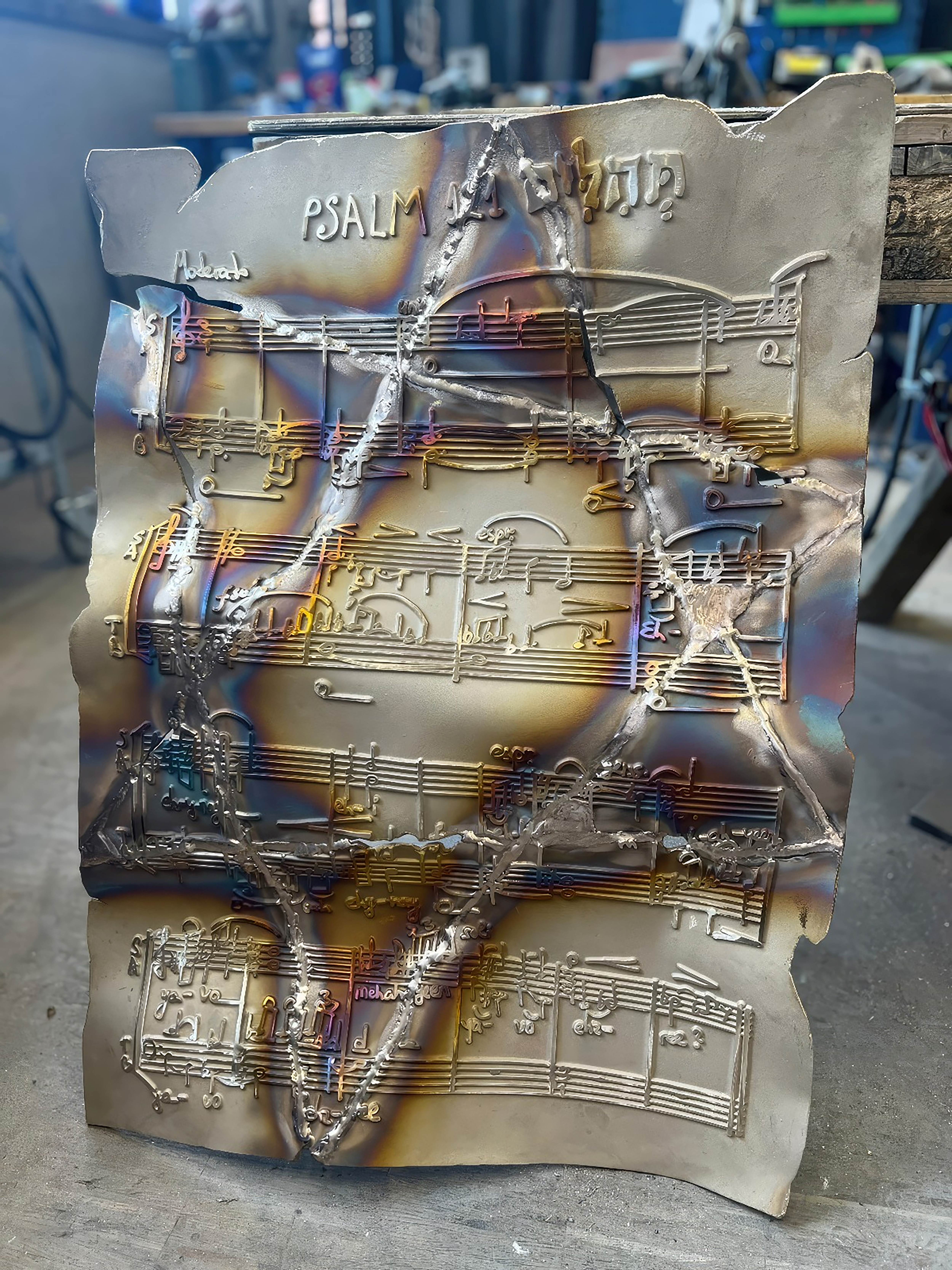 In einem ersten Schritt in meiner Arbeit an der Sinfonie setzte ich den Psalm 121 für a capella-Chor als Schutz-Amulett, da dieser Psalm oft als Talisman für Reisende verwendet wurde. Nachdem ich den Psalm beendet hatte, „zerbrach“ ich ihn. Sein fragmentiertes musikalisches Material – ohne Worte – erscheint in den Interludien, wobei das Solo-Violoncello eine symbolische Umarmung bietet, die die verschiedenen Gedichte (Teile) zusammenhält und diese so stärkt und zu einer neuen Einheit verschmilzt. Der Psalm bleibt in der Sinfonie ungesungen und wird nur in einer Bronzeskulptur existieren, die ich als integralen Teil dieses Gedächtniswerks geschaffen habe.