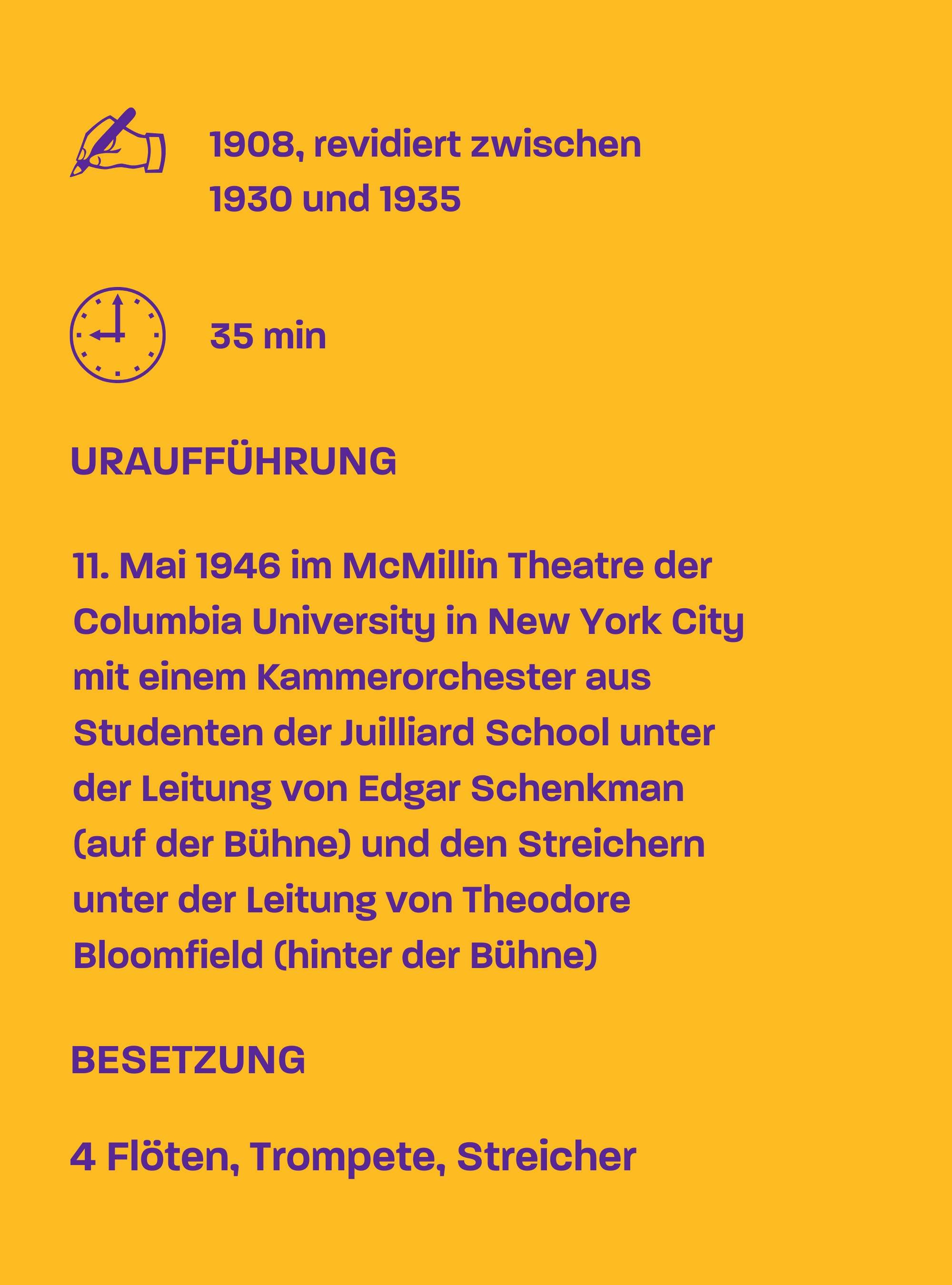 Lera Auerbachs Sinfonie wird umgeben von zwei sehr unterschiedlichen Kompositionen: Charles Ives‘ „The Unanswered Question“ formuliert die Frage nach dem Sinn menschlicher Existenz, die unbeantwortet verhallt. Johann Sebastian Bachs Fantasie und Fuge BWV 542, komponiert für die Orgel, erklingt in einer Bearbeitung von Mordechai Rechtman, der als Kind mit seiner Familie nach der Machtergreifung der Nazis 1934 aus Deutschland in das britische Mandatsgebiet Palästina fliehen musste und hier nach der Gründung des Staates Israel das Musikleben des jüdischen Staates in vielfältiger Weise mitgestaltete.