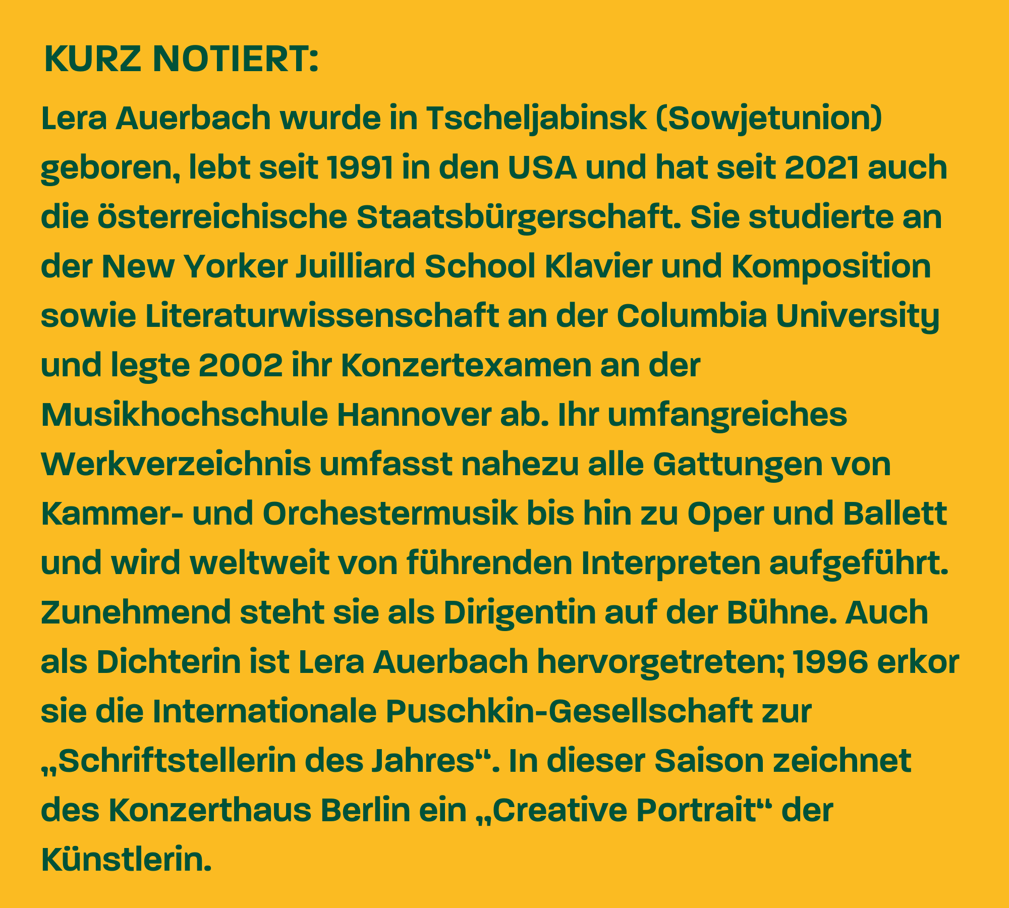 "ICH BRAUCHE EIN GANZES ANDERES LEBEN, UM DIESES NICHT ZU VERGEUDEN.“ Lera Auerbach